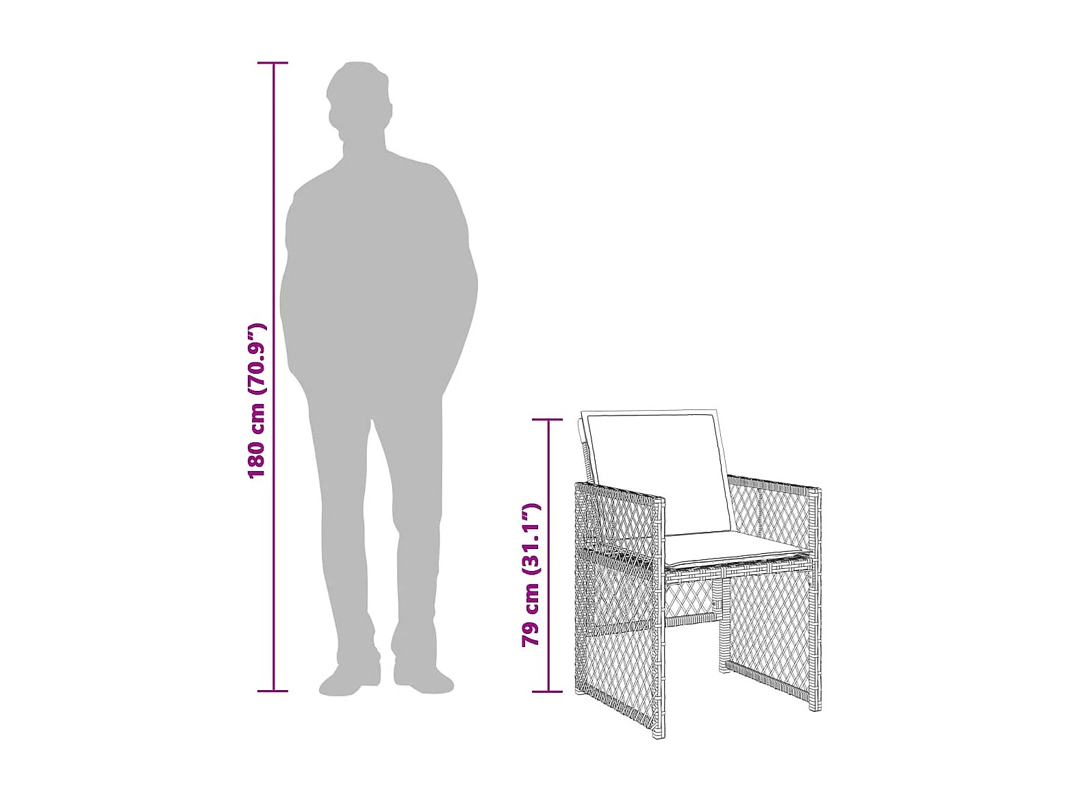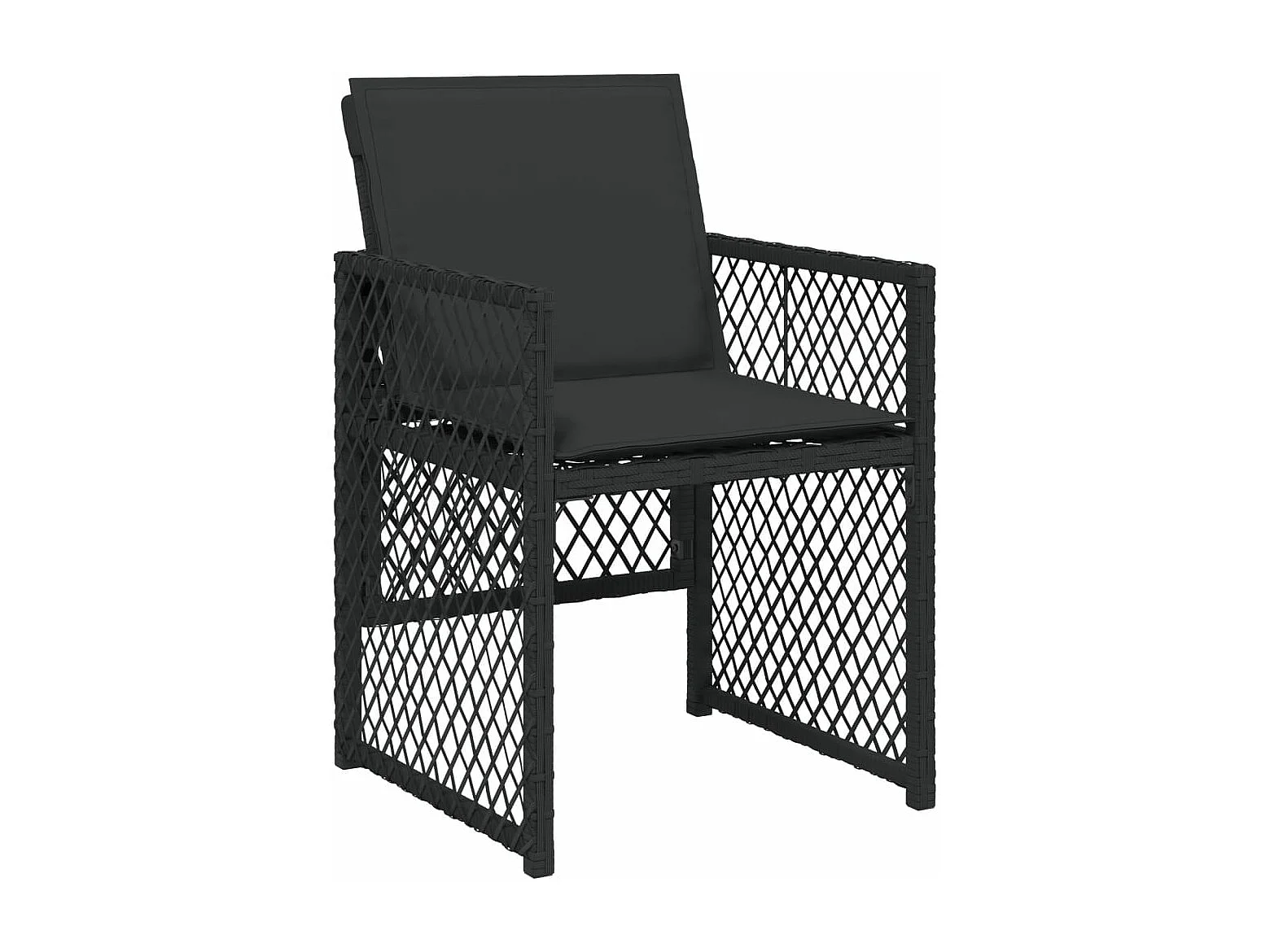 Set da Pranzo da Giardino 13pz con Cuscini Nero in Polyrattan
