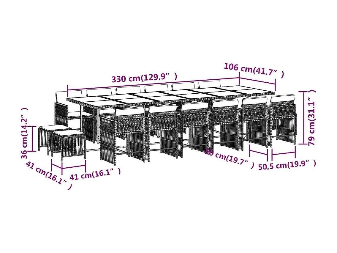 Set da Pranzo da Giardino 17 pz con Cuscini Nero in Polyrattan