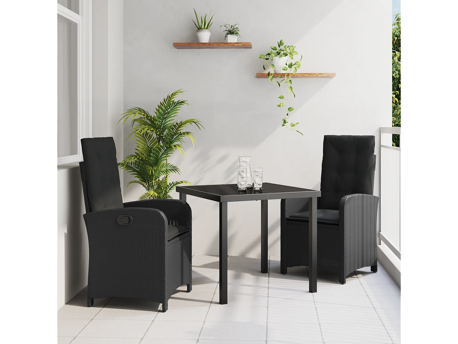 Set da pranzo da giardino composto da 3 pezzi con cuscini in polyrattan nero