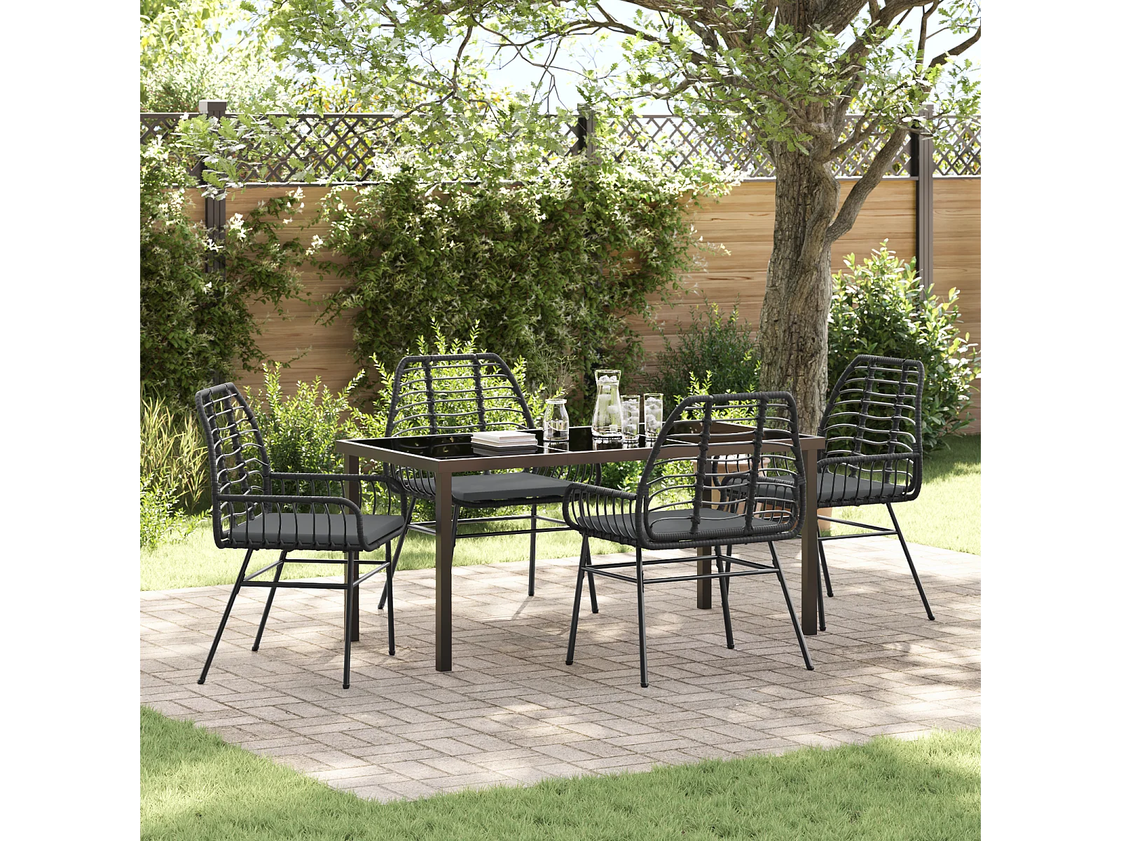 Set da pranzo da giardino 5 pezzi con cuscini in rattan nero Poly