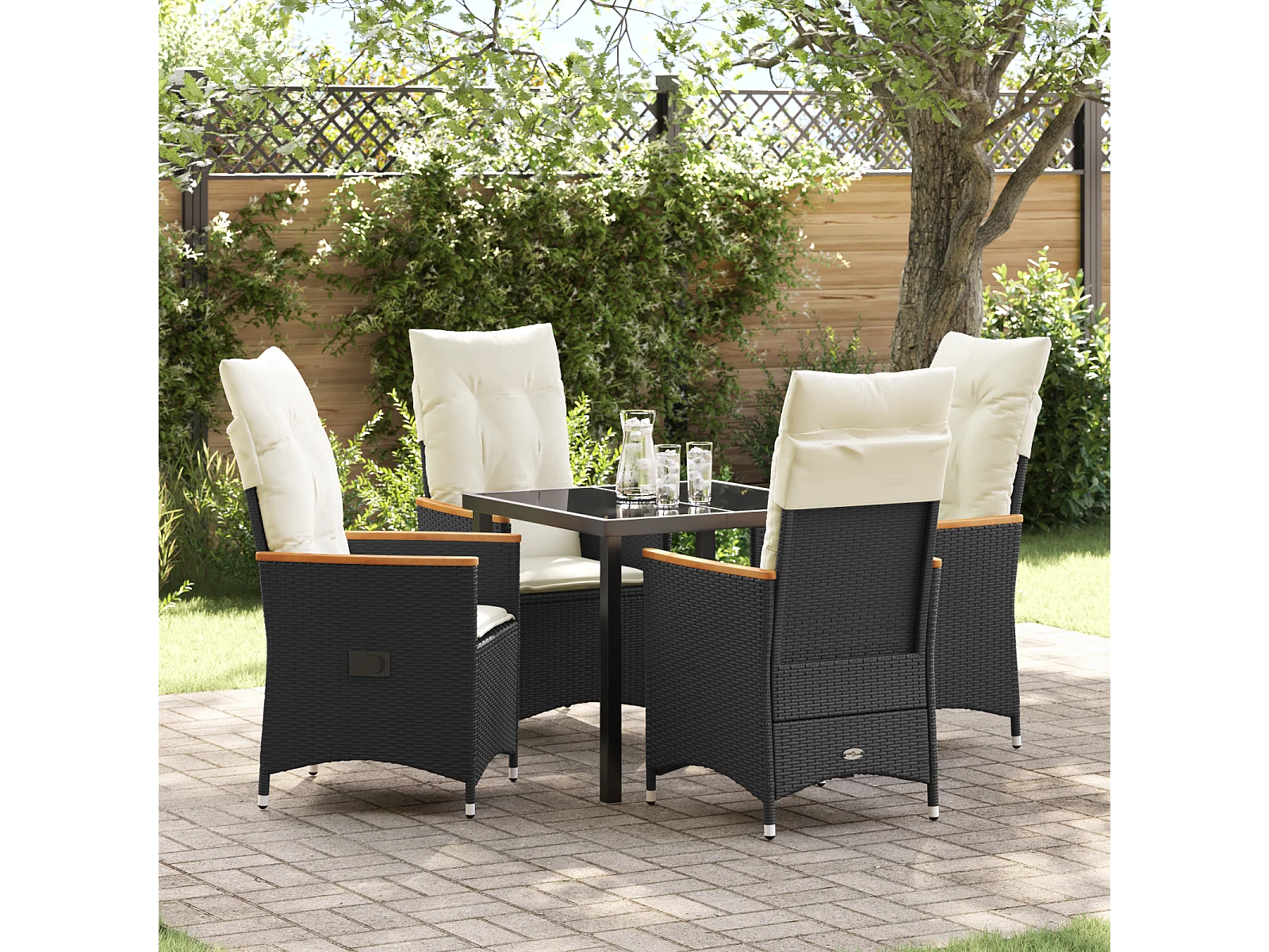 Set da pranzo da giardino 5 pezzi con cuscini in rattan nero Poly