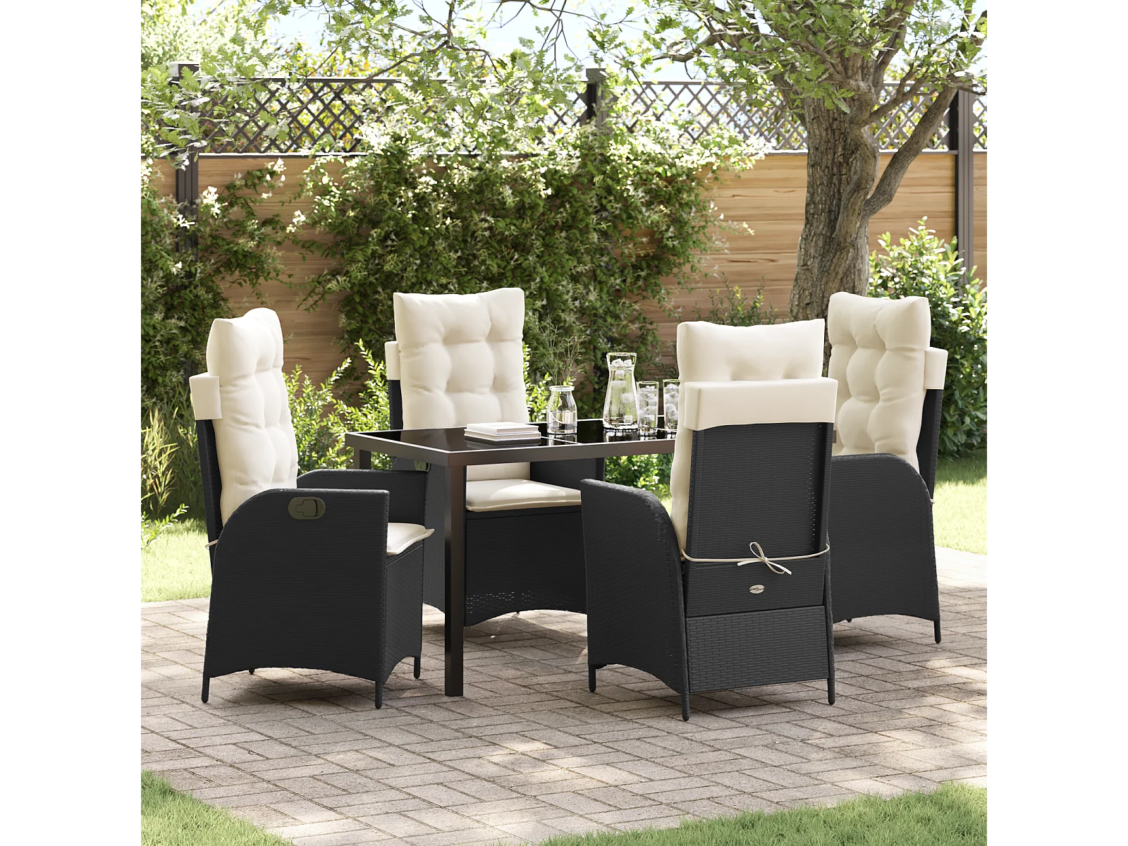 Set da pranzo da giardino 5 pezzi con cuscini in rattan nero Poly