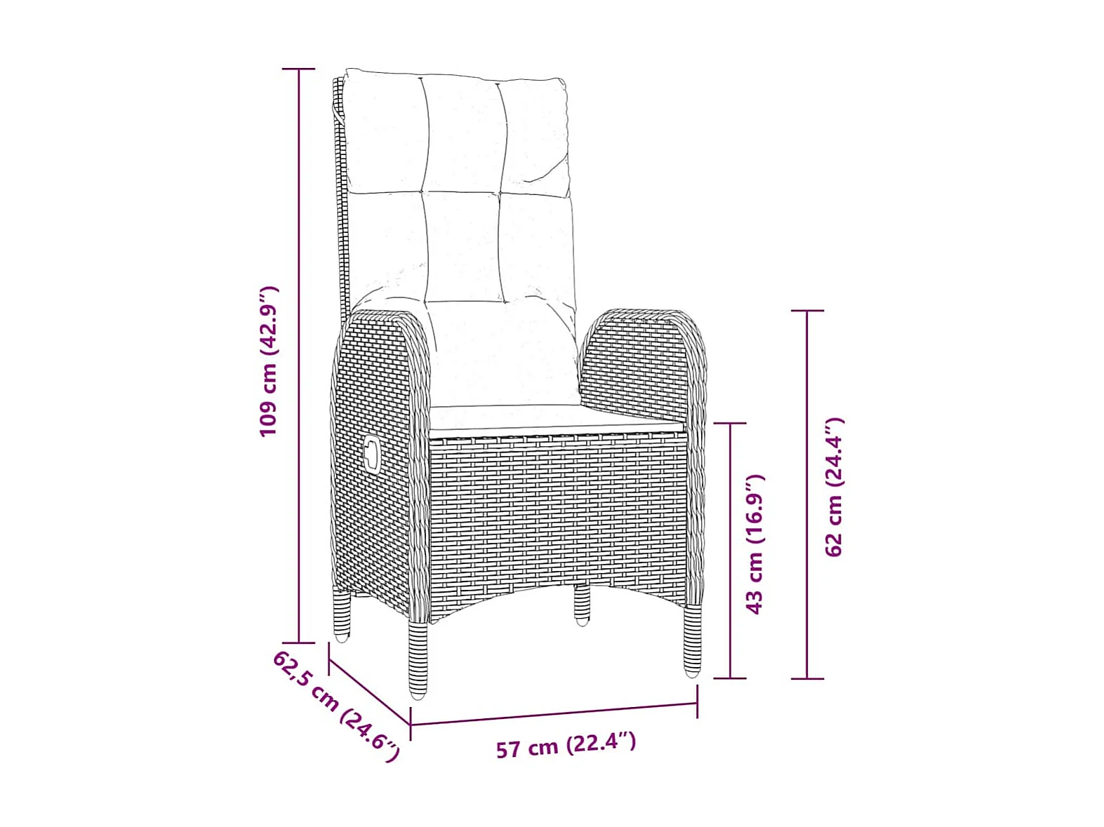 Set da pranzo da giardino 5 pezzi con cuscini in rattan grigio PE