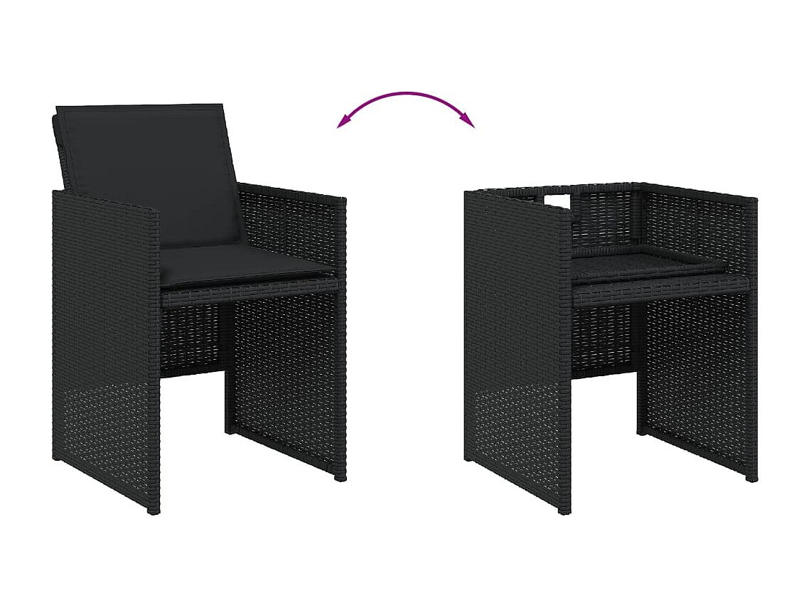 Set da Pranzo da Giardino 5 pz Nero con Cuscini in Polyrattan