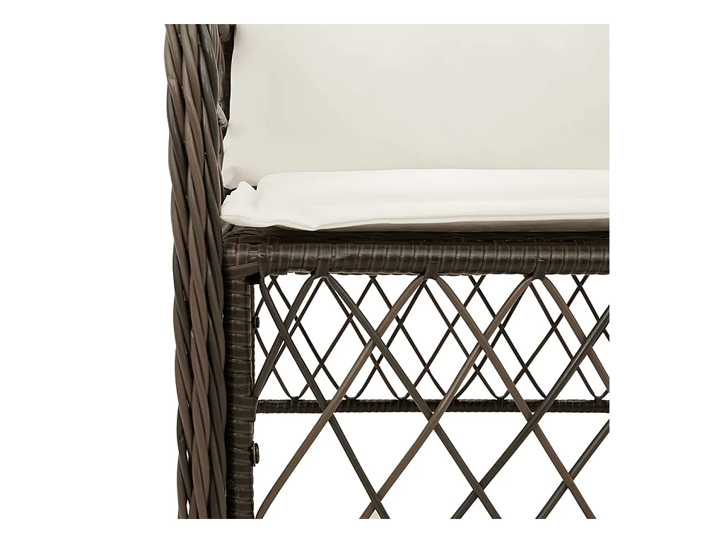 Set da Pranzo da Giardino 3pz con Cuscini in Polyrattan Marrone