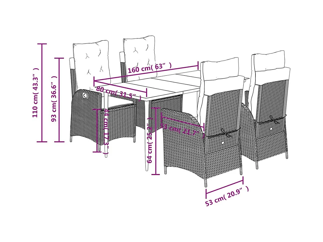 Set da Pranzo da Giardino 5pz con Cuscini in Polyrattan Marrone