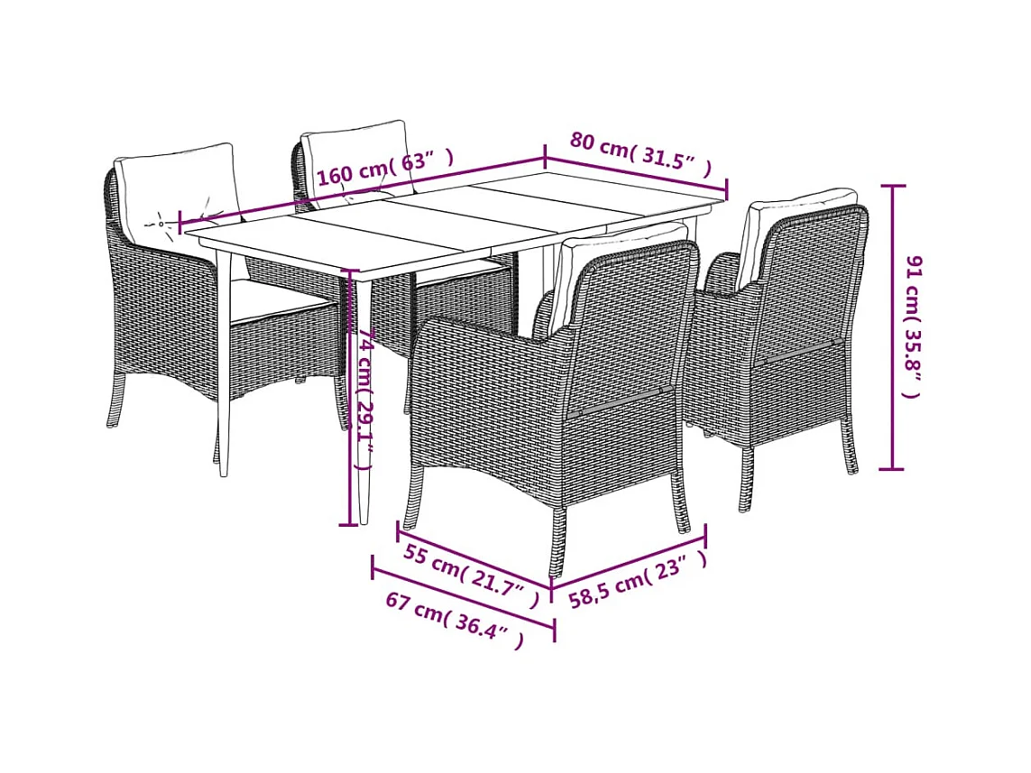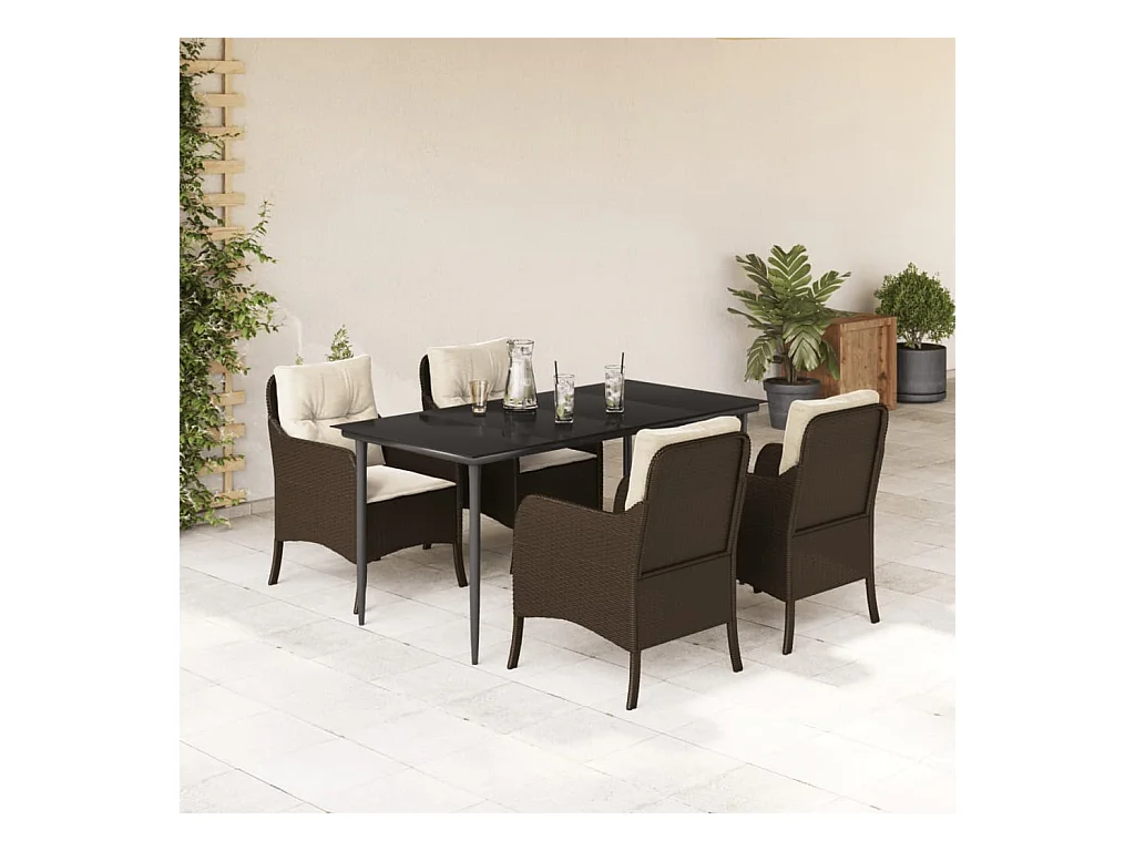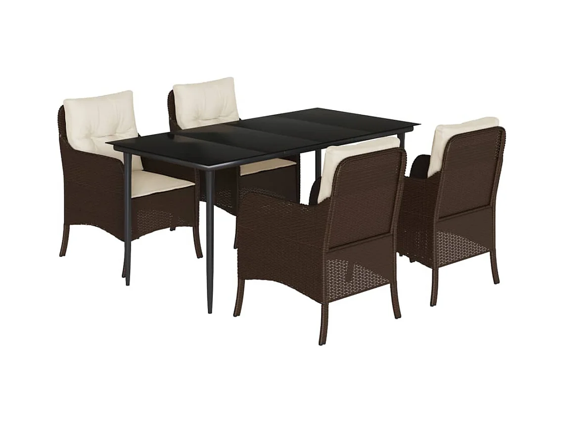 Set da Pranzo da Giardino 5pz con Cuscini in Polyrattan Marrone