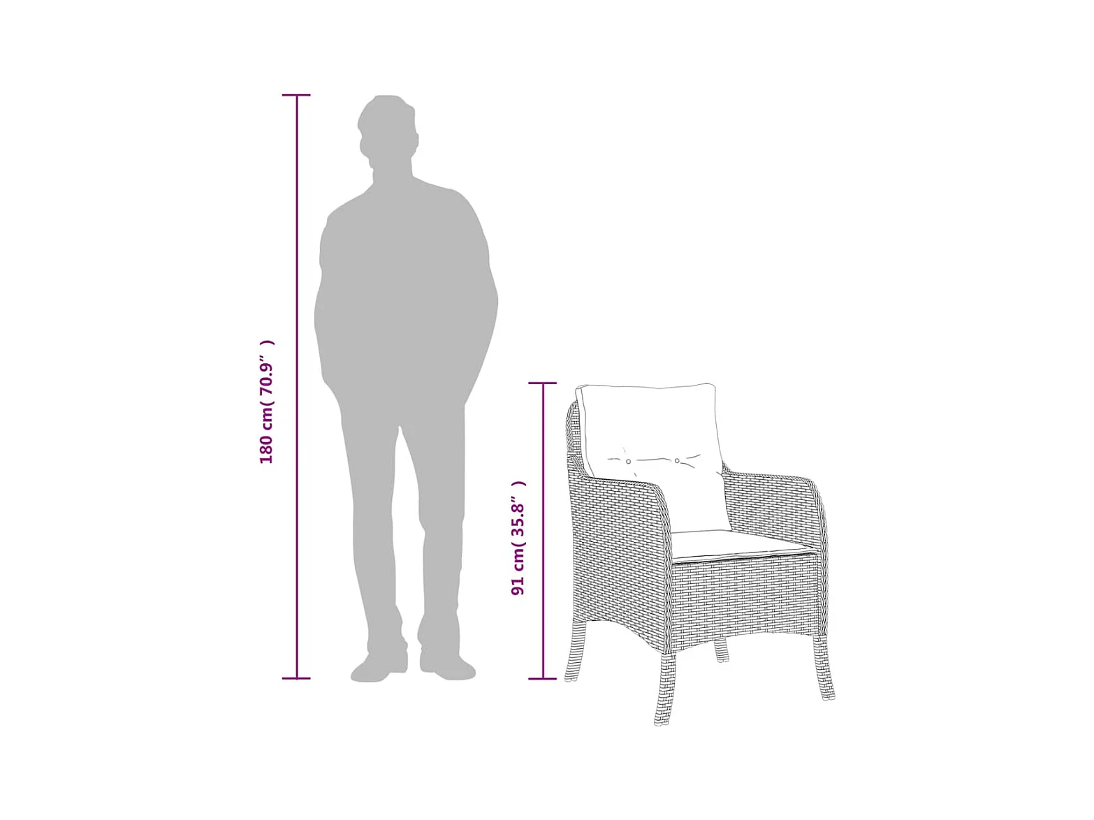 Set da Pranzo da Giardino 3pz con Cuscini in Polyrattan Marrone