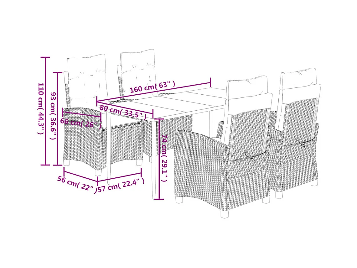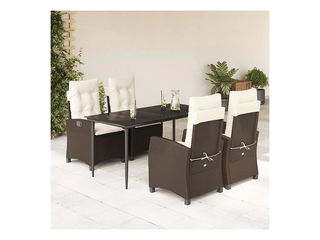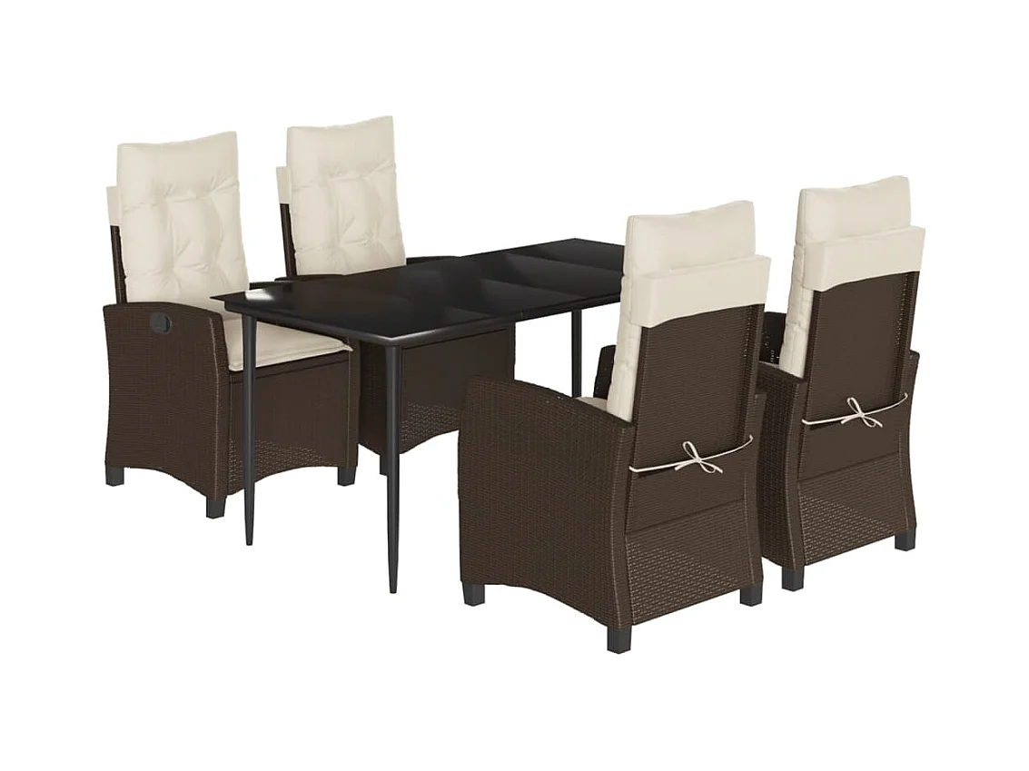 Set da Pranzo da Giardino 5pz con Cuscini in Polyrattan Marrone