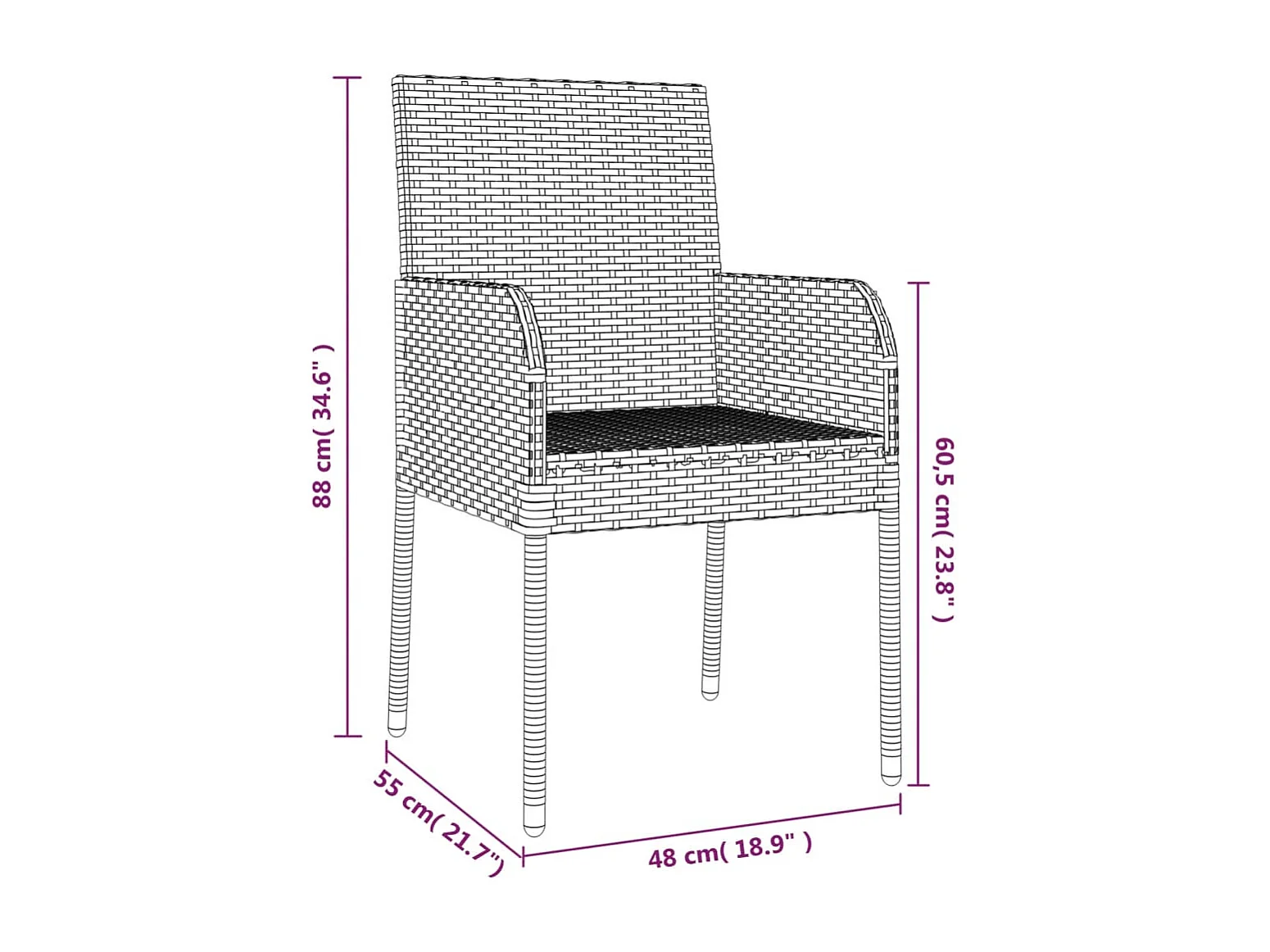 Set da Pranzo da Giardino 7 pz con Cuscini in Polyrattan Grigio