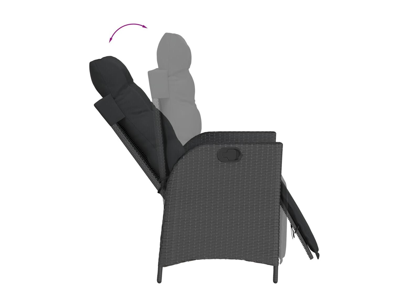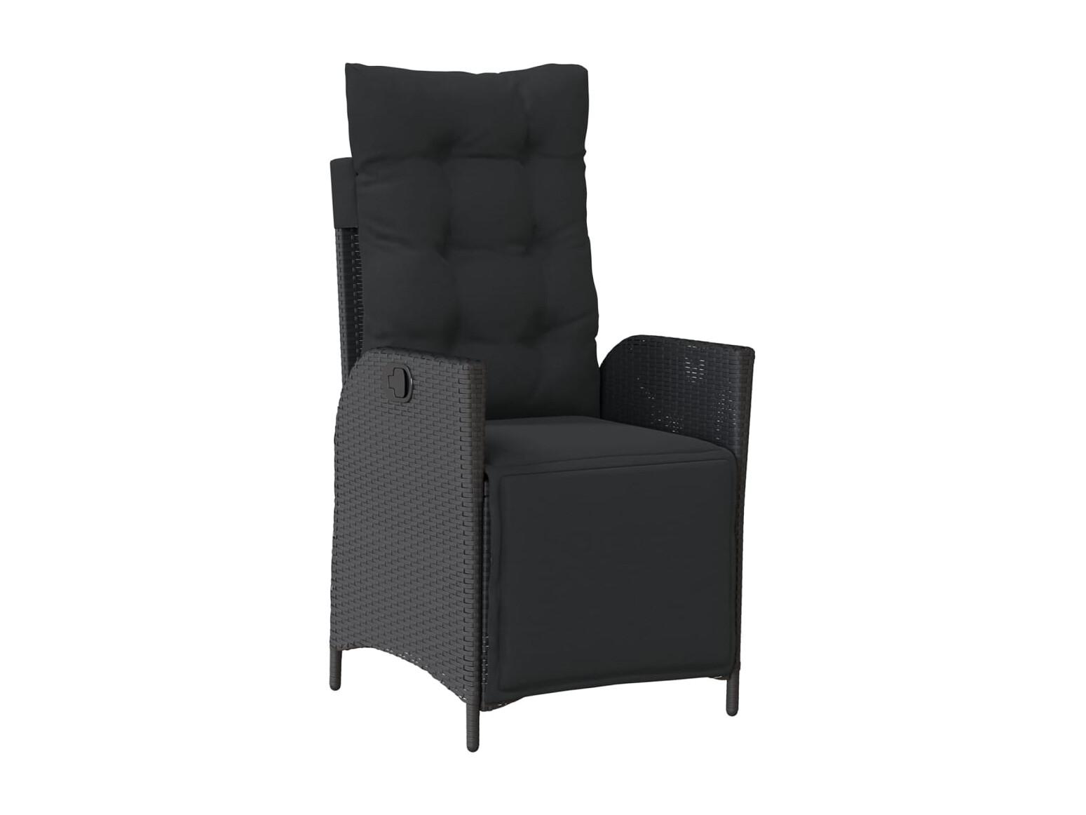 Set da Pranzo da Giardino 7 pz Nero con Cuscini in Polyrattan