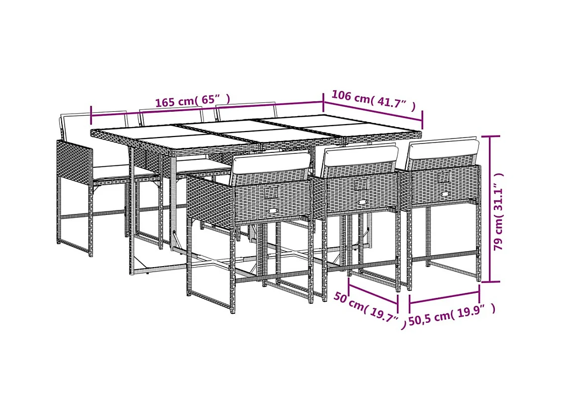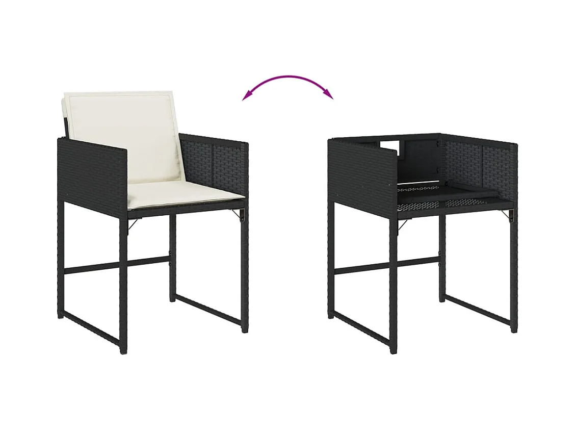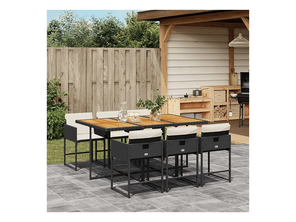 Set da Pranzo da Giardino 7 pz Nero con Cuscini in Polyrattan
