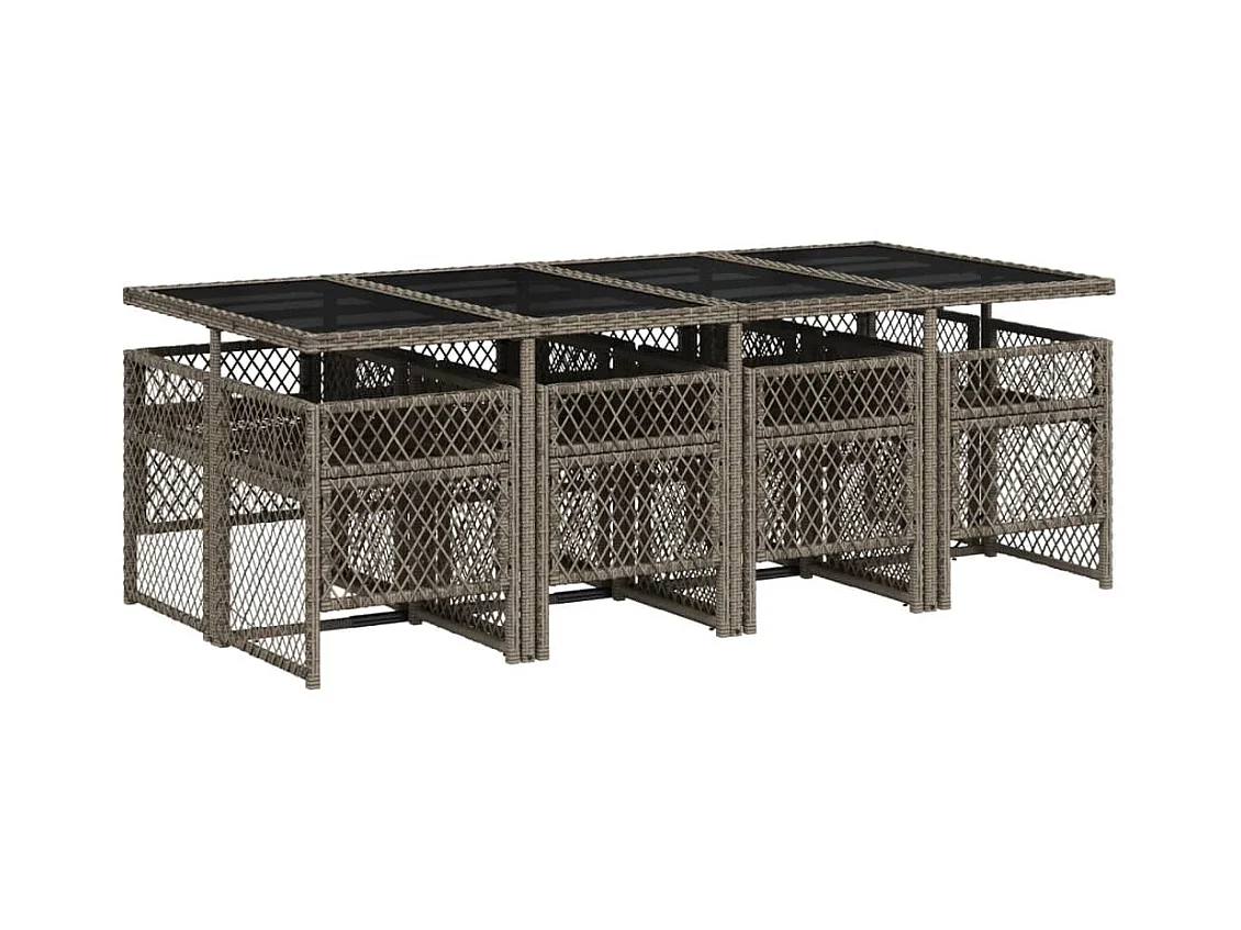 Set da Pranzo da Giardino 13pz con Cuscini Grigio in Polyrattan