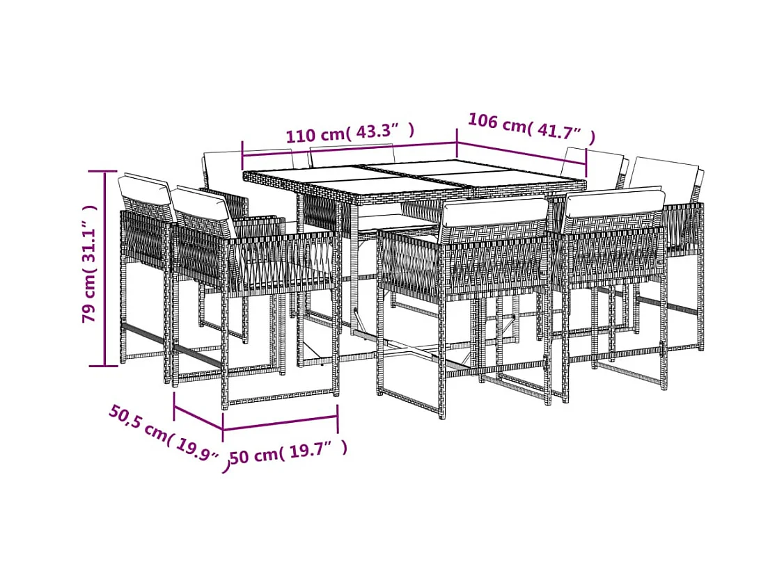 Set da Pranzo da Giardino 9 pz con Cuscini Nero in Polyrattan