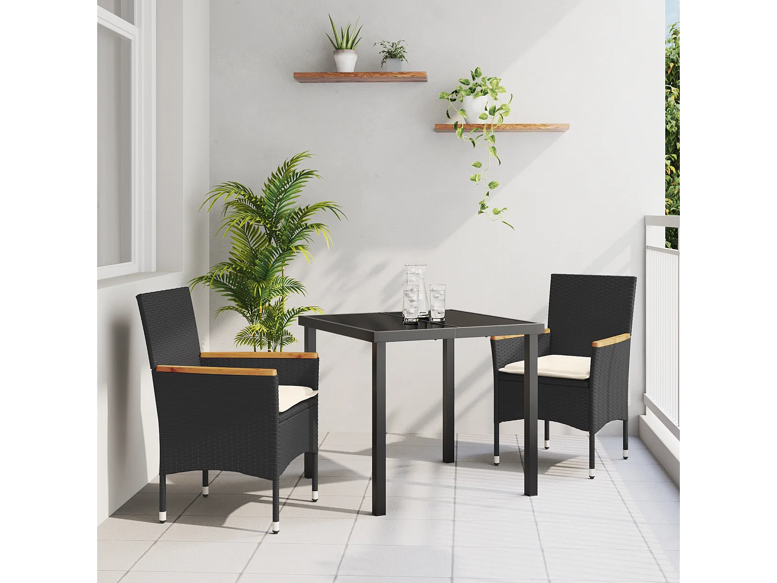 Set da pranzo da giardino composto da 3 pezzi con cuscini in polyrattan nero