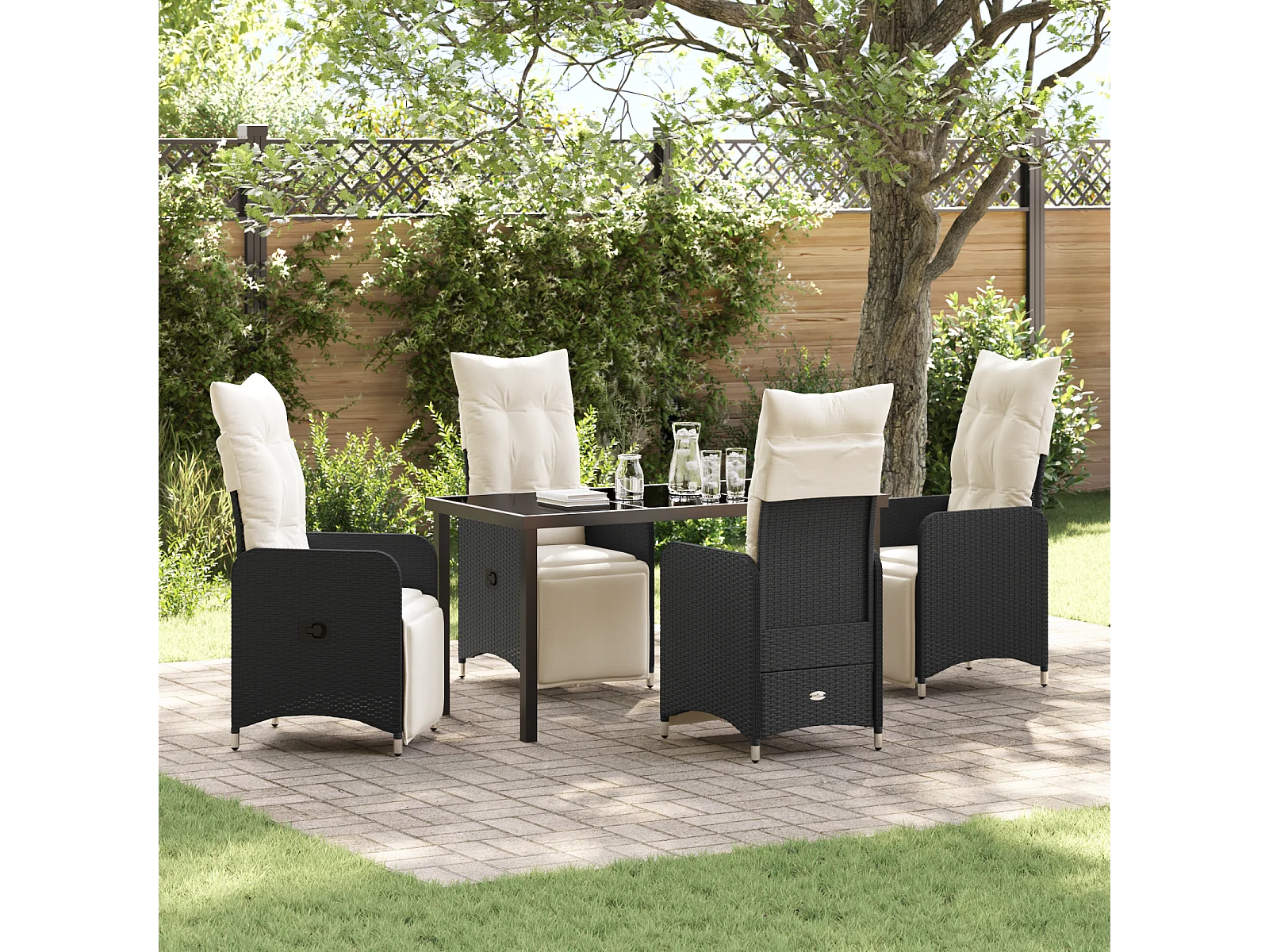 Set da pranzo da giardino 5 pezzi con cuscini in rattan nero Poly