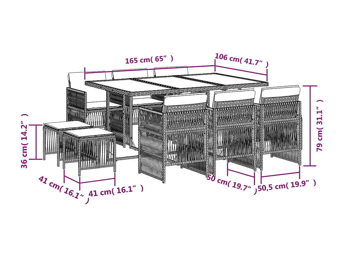 Set da pranzo da giardino in polyrattan marrone da 9 pezzi e cuscini