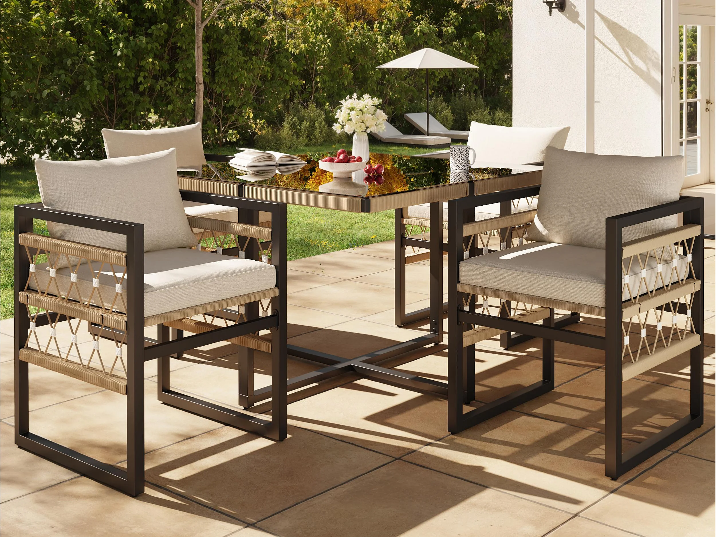 Set di tavolo e sedie da giardino