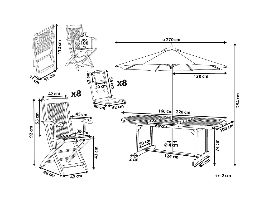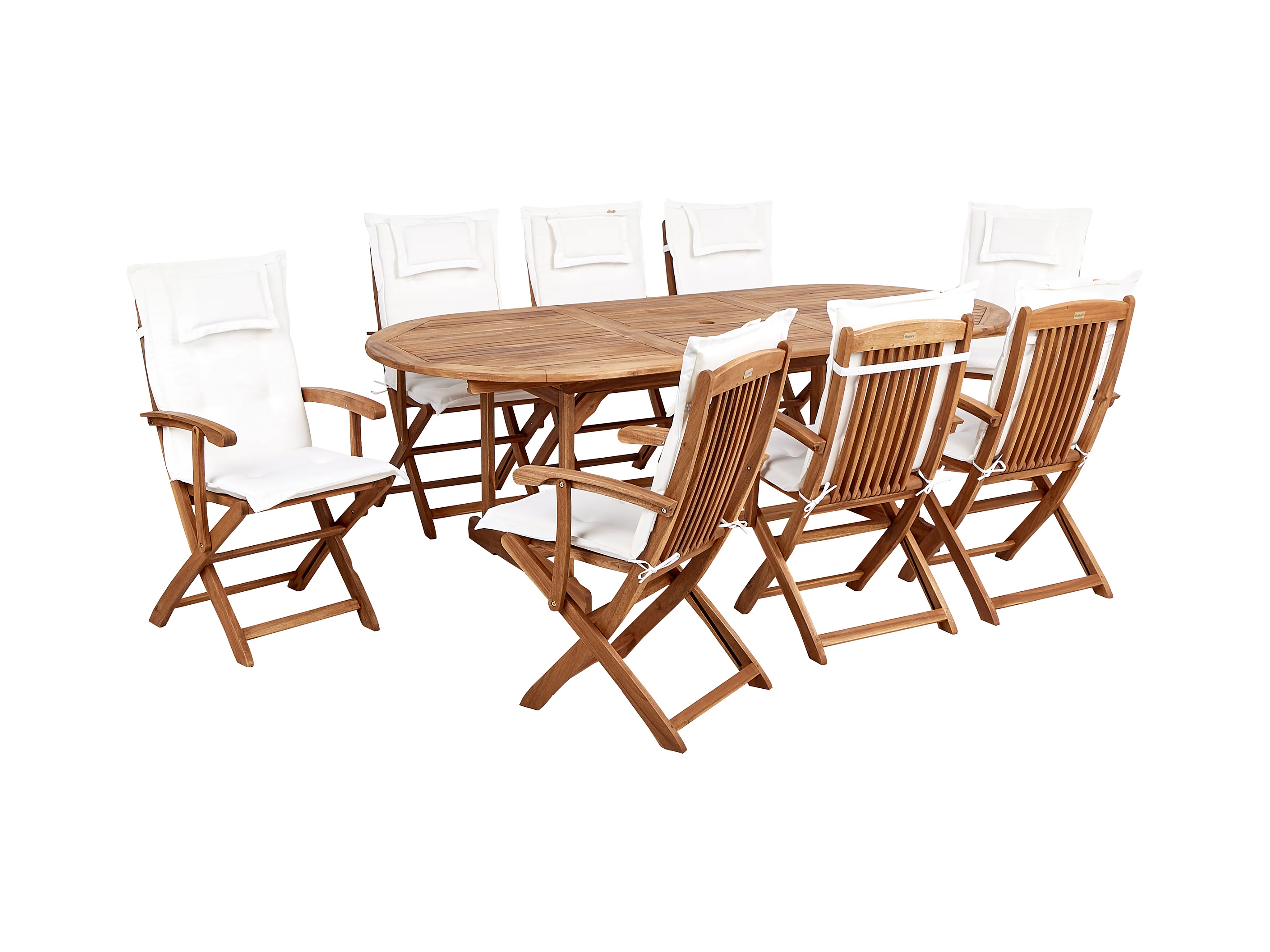 Set da pranzo da giardino 8 posti MAUI II con Ombrellone Legno d'acacia Bianco sporco
