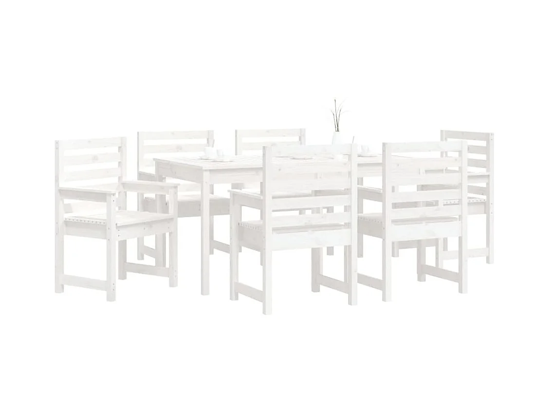 Set da Pranzo per Giardino 7pz Bianco in Legno Massello di Pino