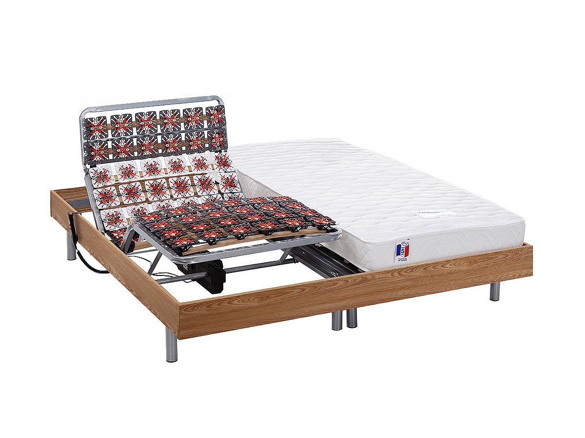 Set da relax sospensioni 100% lattice HOMERE III di DREAMEA - quercia naturale - 2 x 90 x 200 cm - motori OKIN