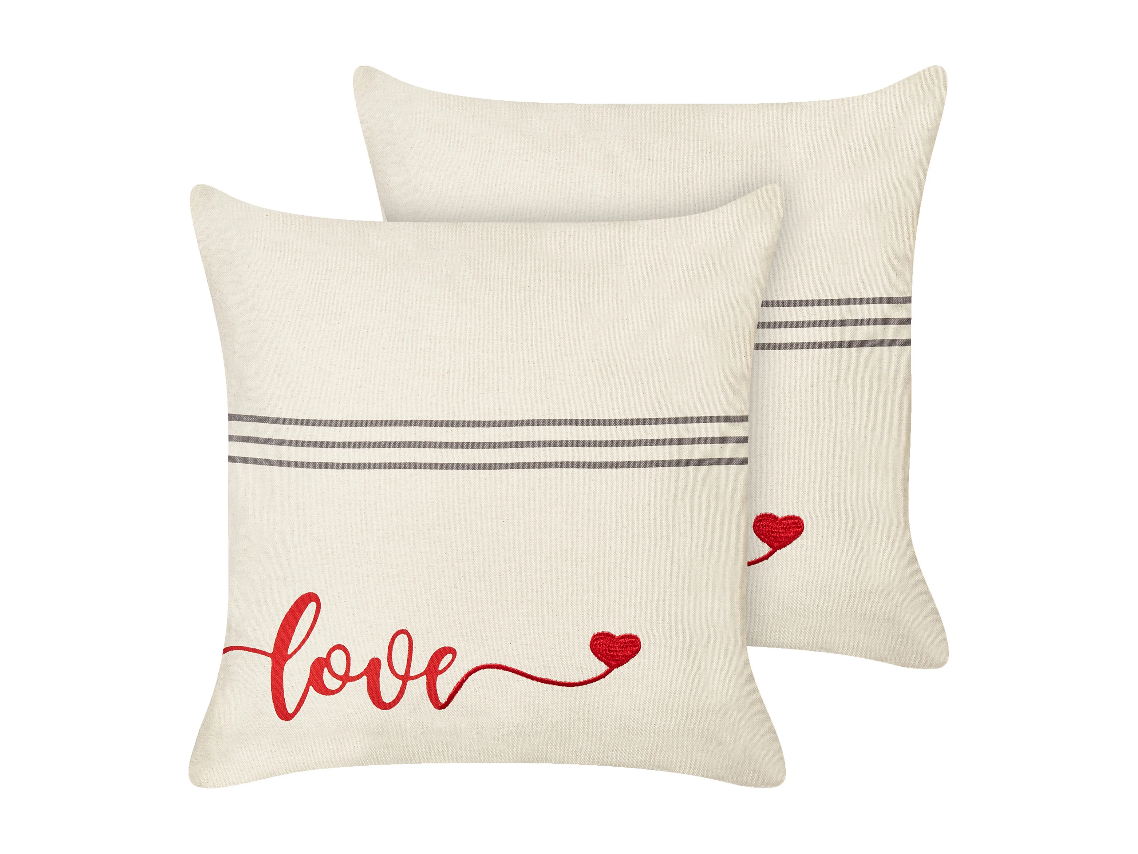 Set di 2 cuscini PLUMERIA Cotone 45 x 45 cm Beige Scritta