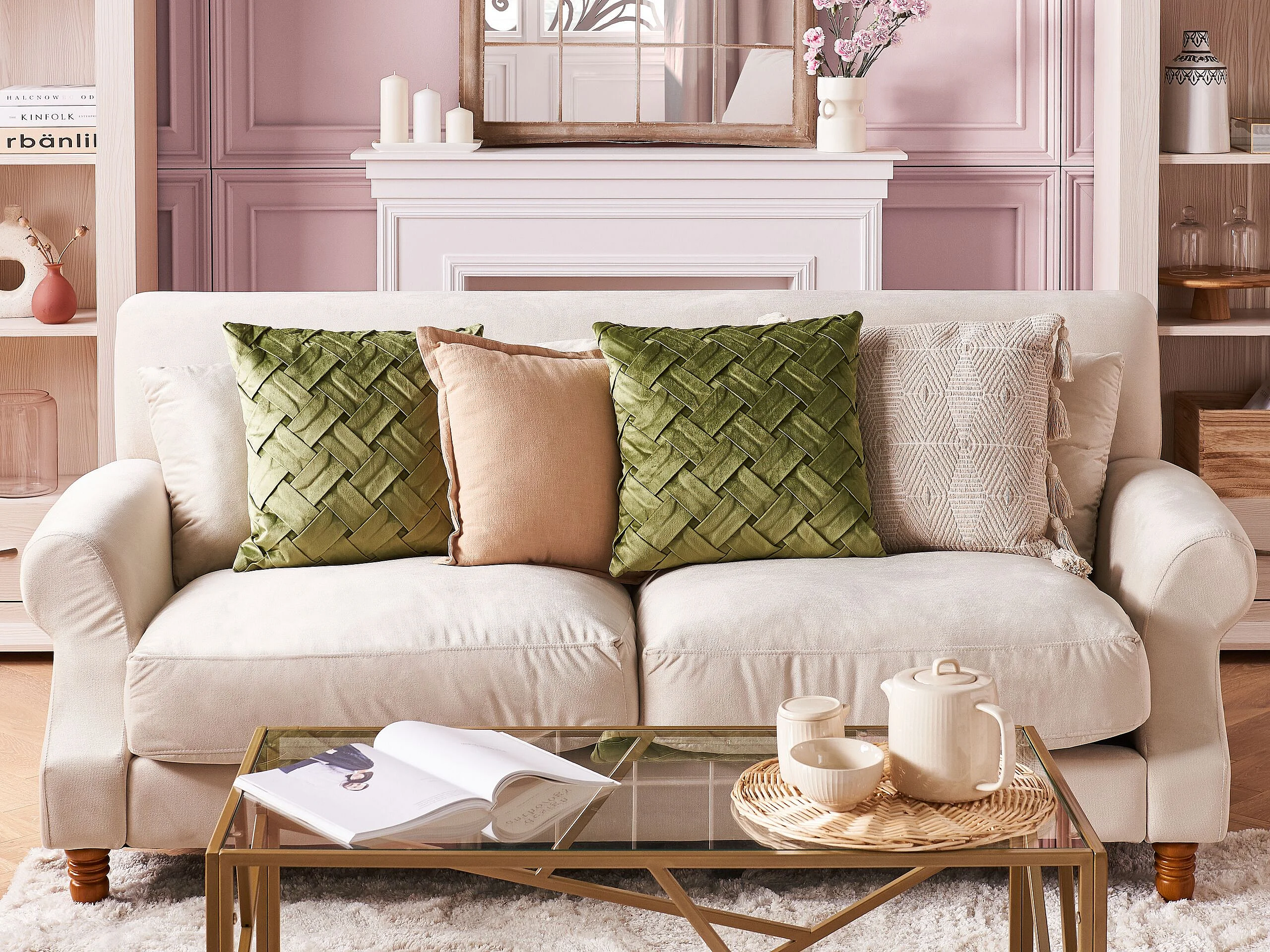 Set di 2 cuscini AEONIUM Velluto 45 x 45 cm Verde oliva Trama astratta