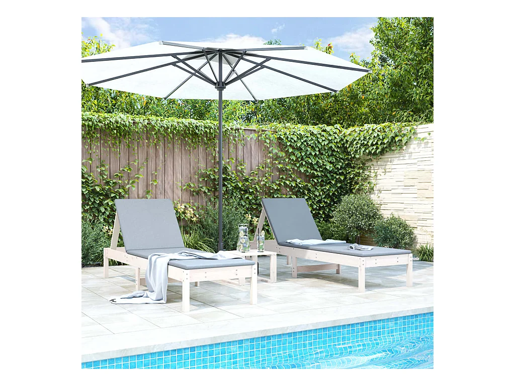Set di 2 sedie a sdraio con tavolo bianco in legno massello di pino