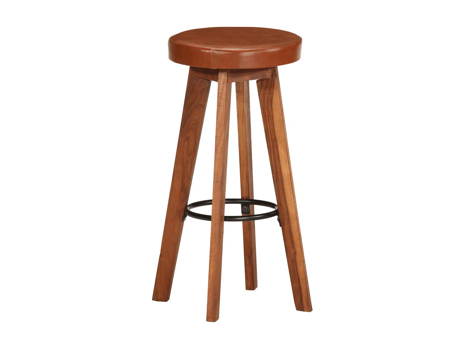 Set di 2 sedie da bar in vera pelle e legno massello di acacia