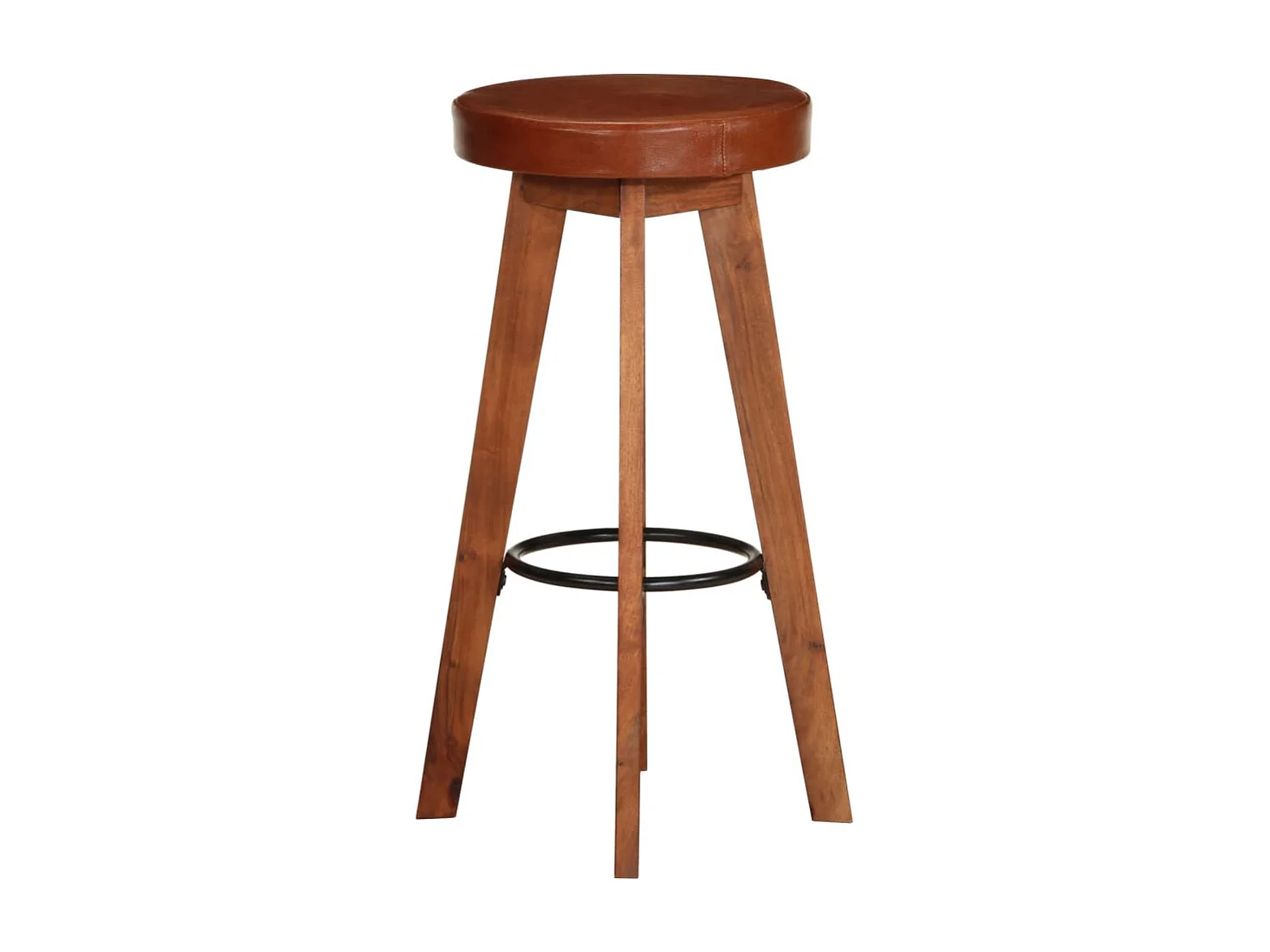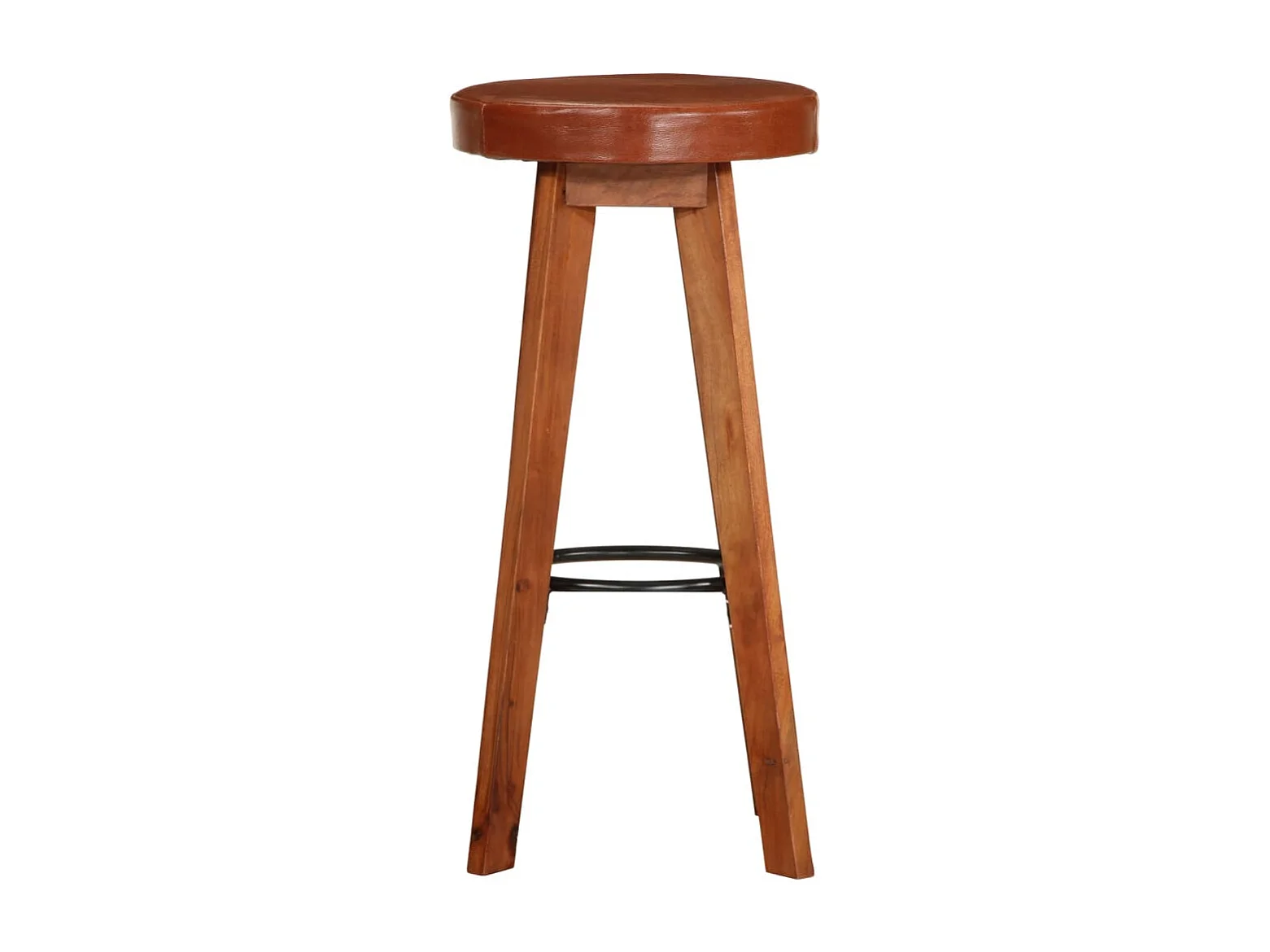 Sgabelli da bar 2 pezzi in vera pelle e legno massello di acacia
