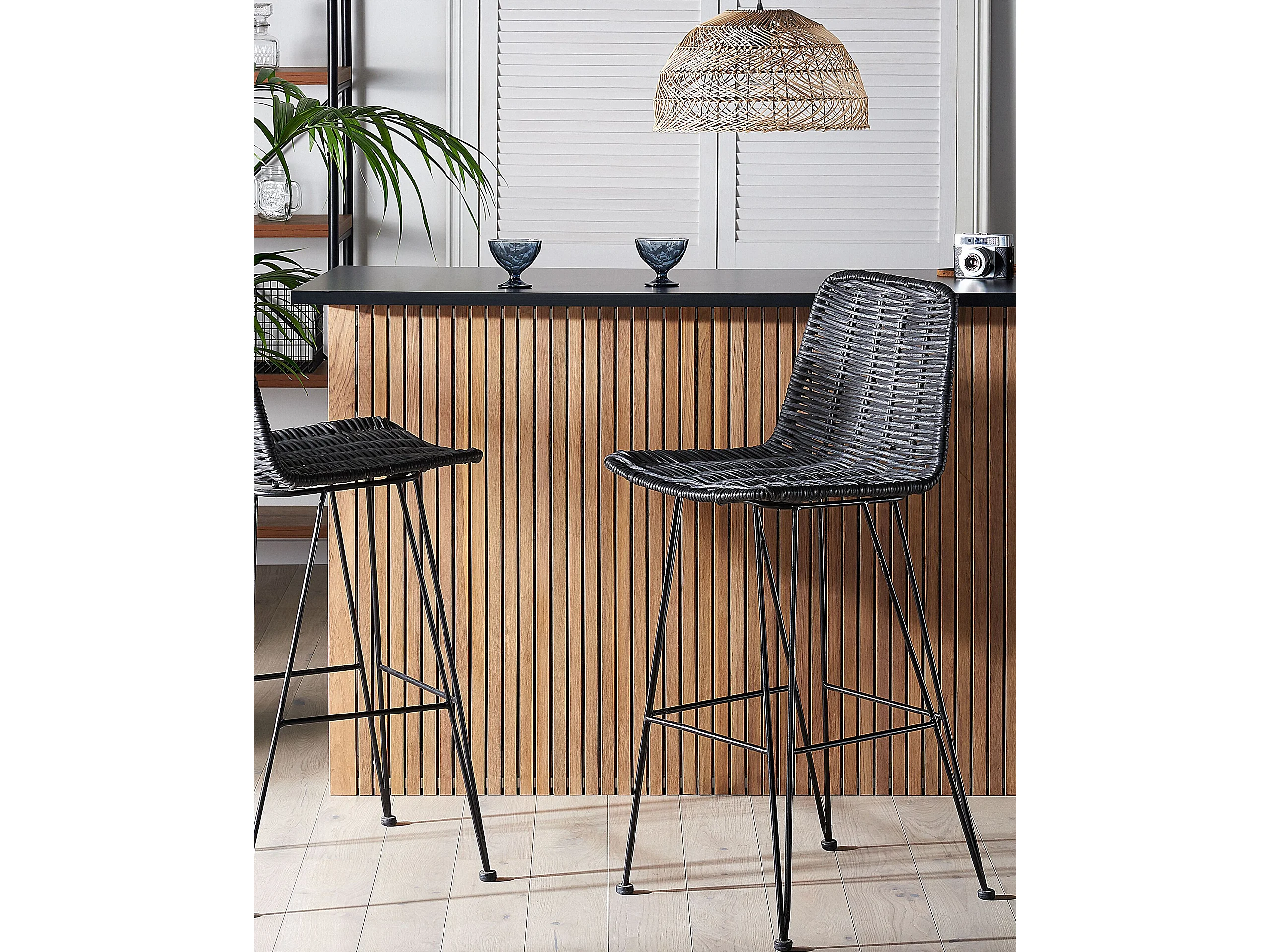 Set di 2 sedie alte CASSITA Rattan Nero