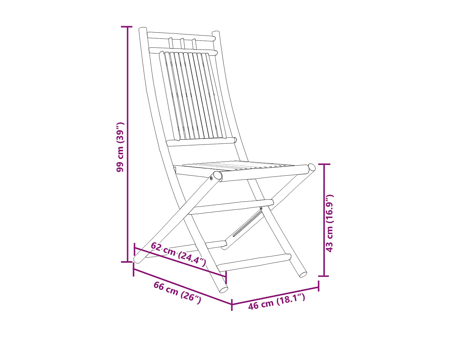 Set di 2 sedie da giardino pieghevoli 46x66x99 cm in bambù
