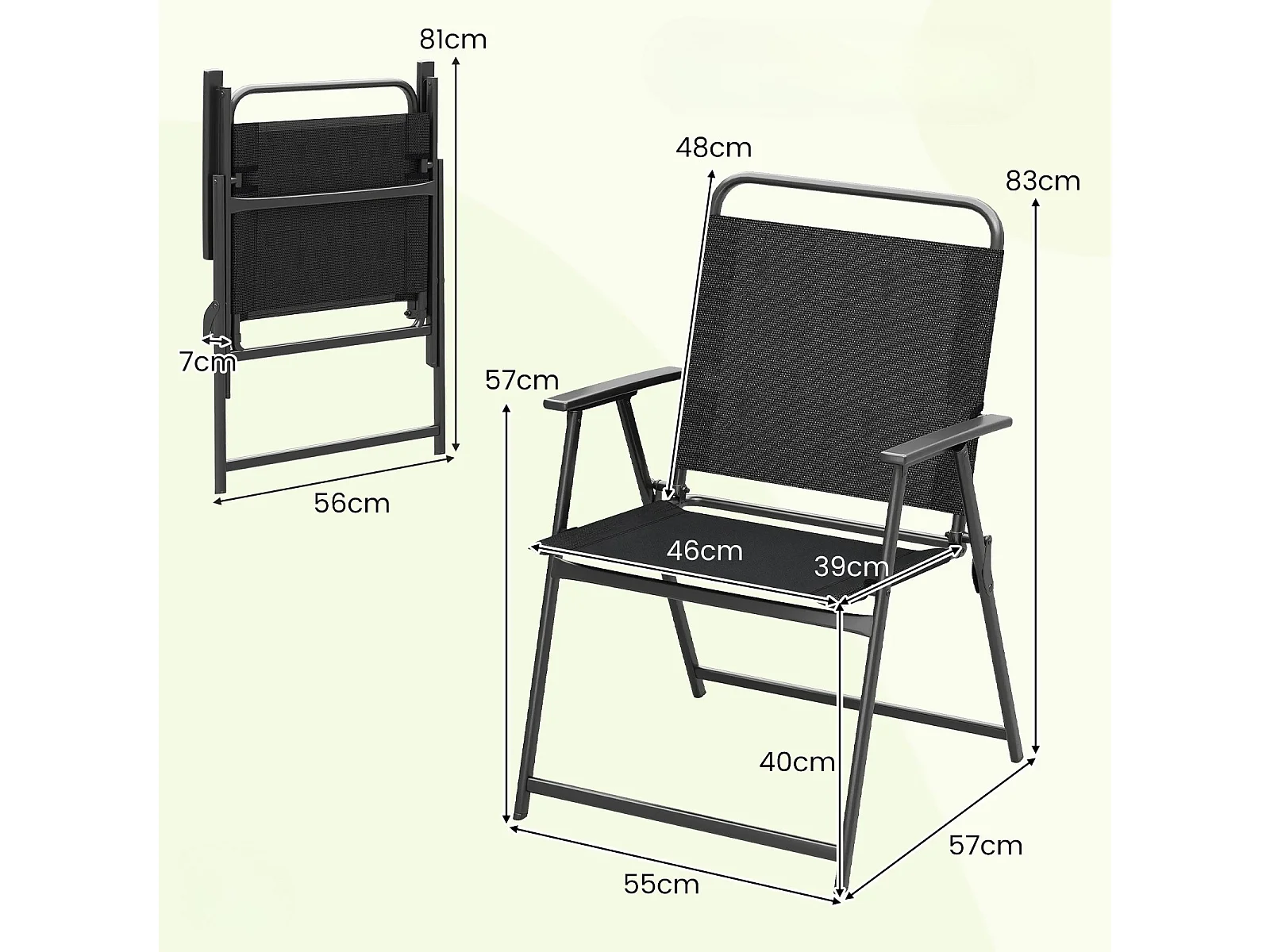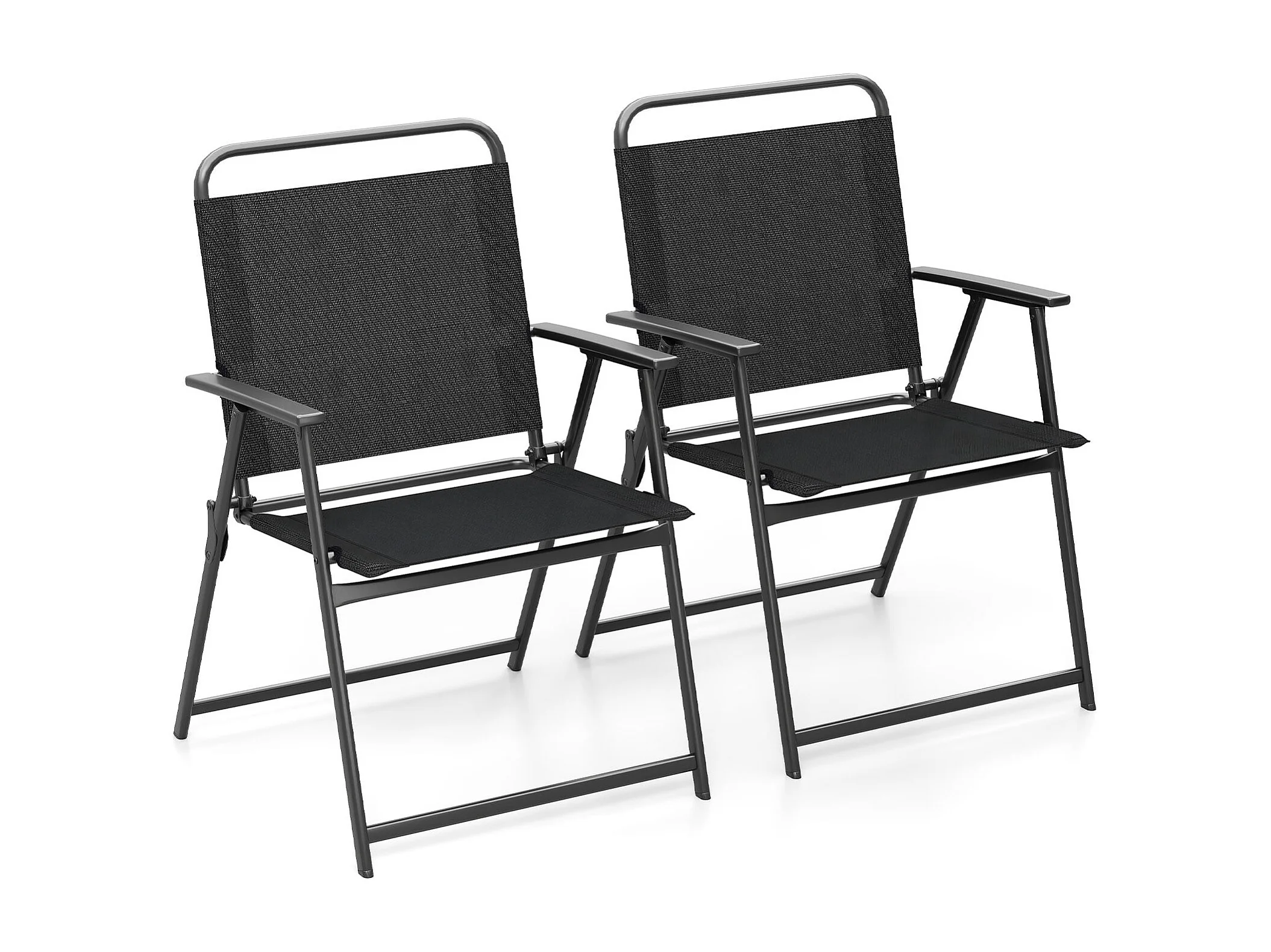 Set di 2 sedie da giardino pieghevoli con telaio in metallo, Sedie da spiaggia con schienale e braccioli Nero