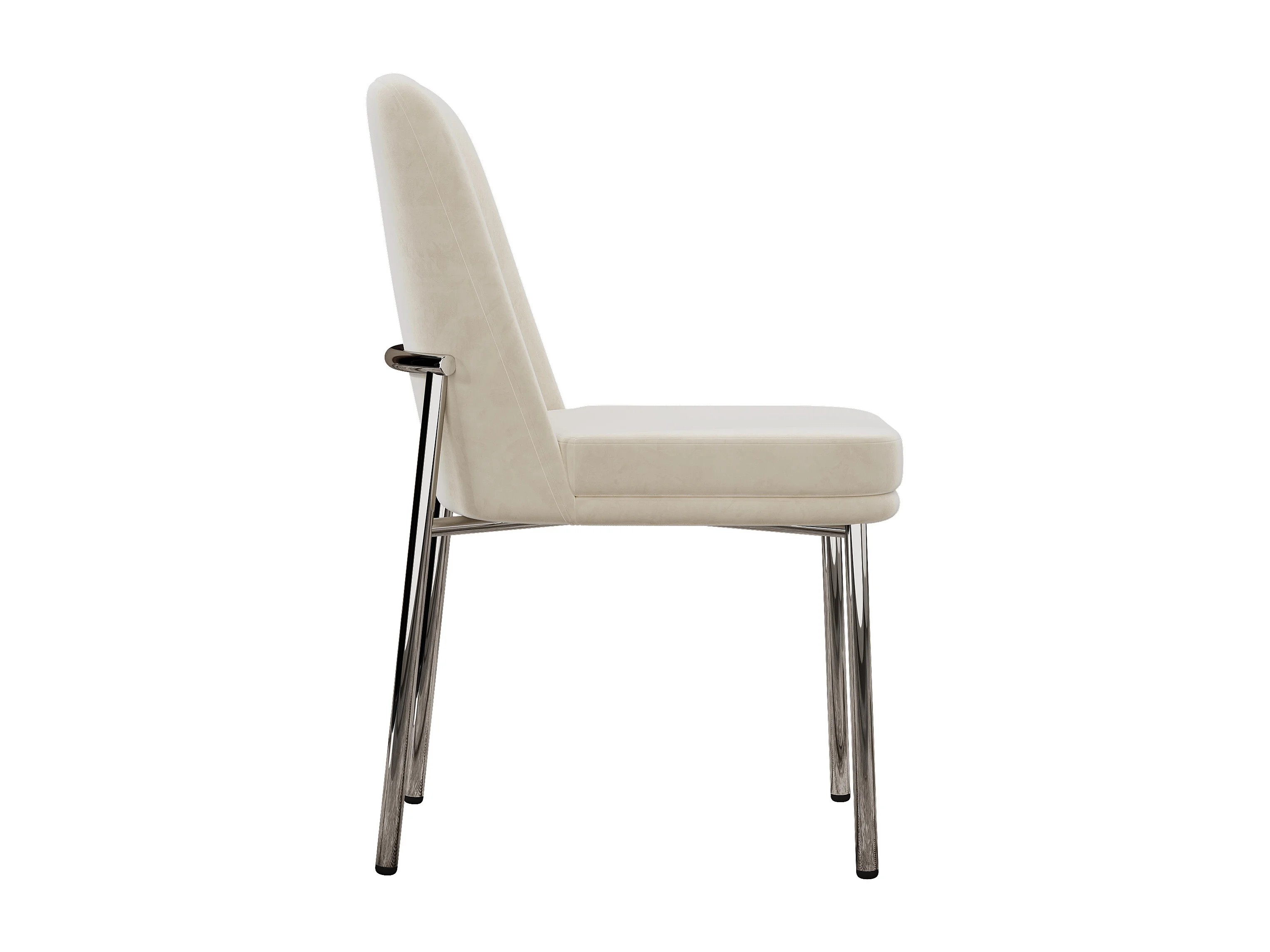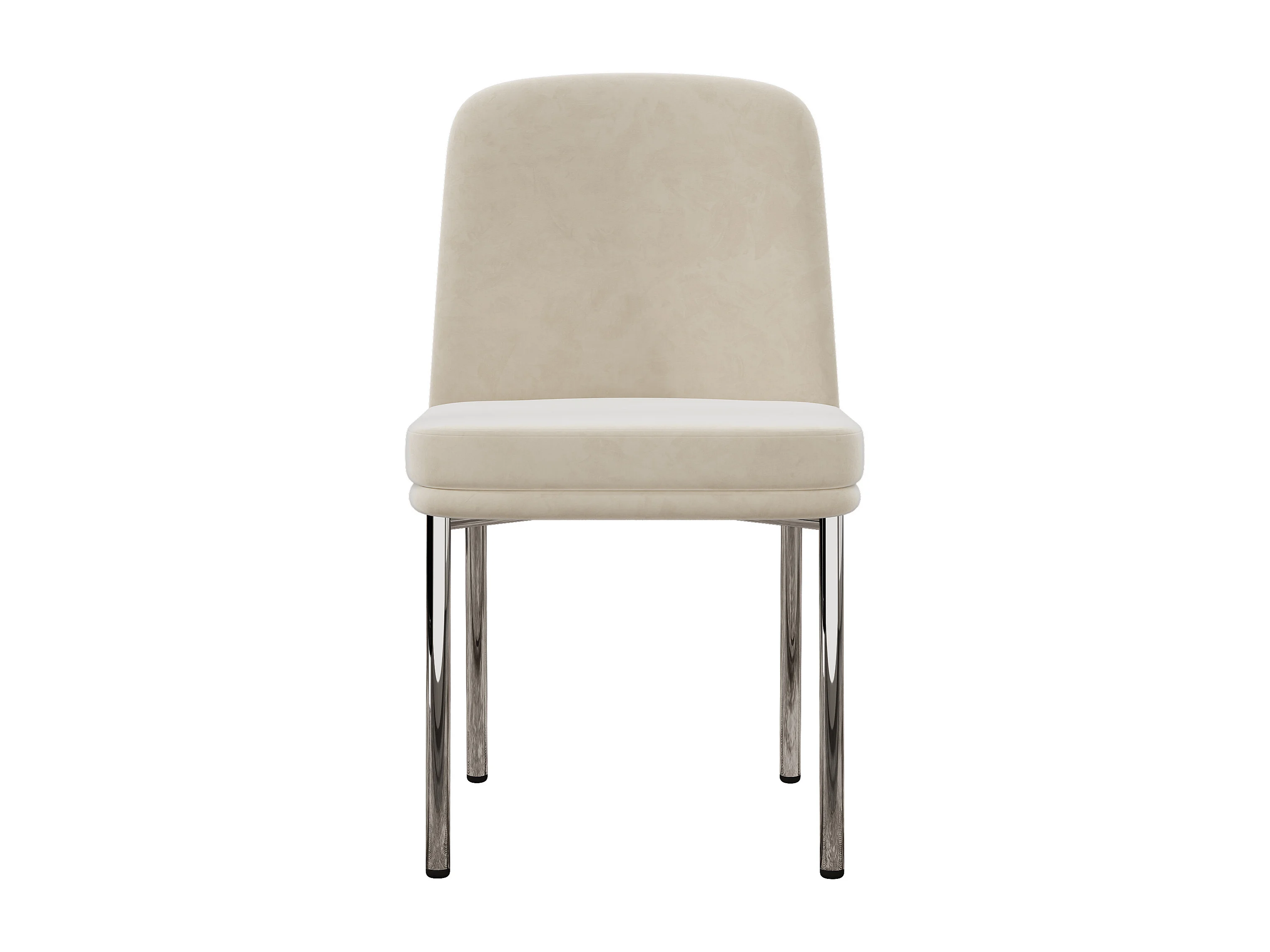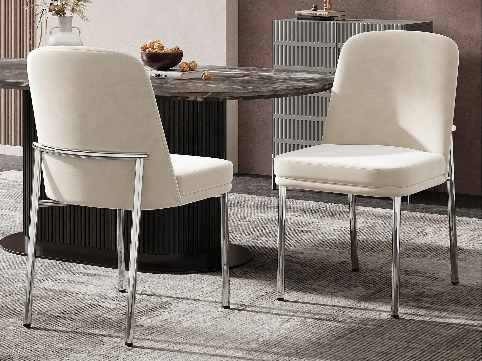 Set di 2 sedie da pranzo - con cuscini del sedile imbottiti - gambe di sedia in metallo argentato - Tessuto in velluto - Beige
