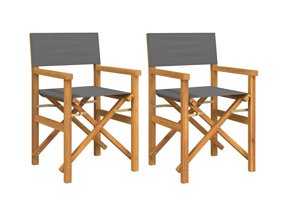 Set di 2 sedie da regista pieghevoli in tessuto di bambù grigio scuro