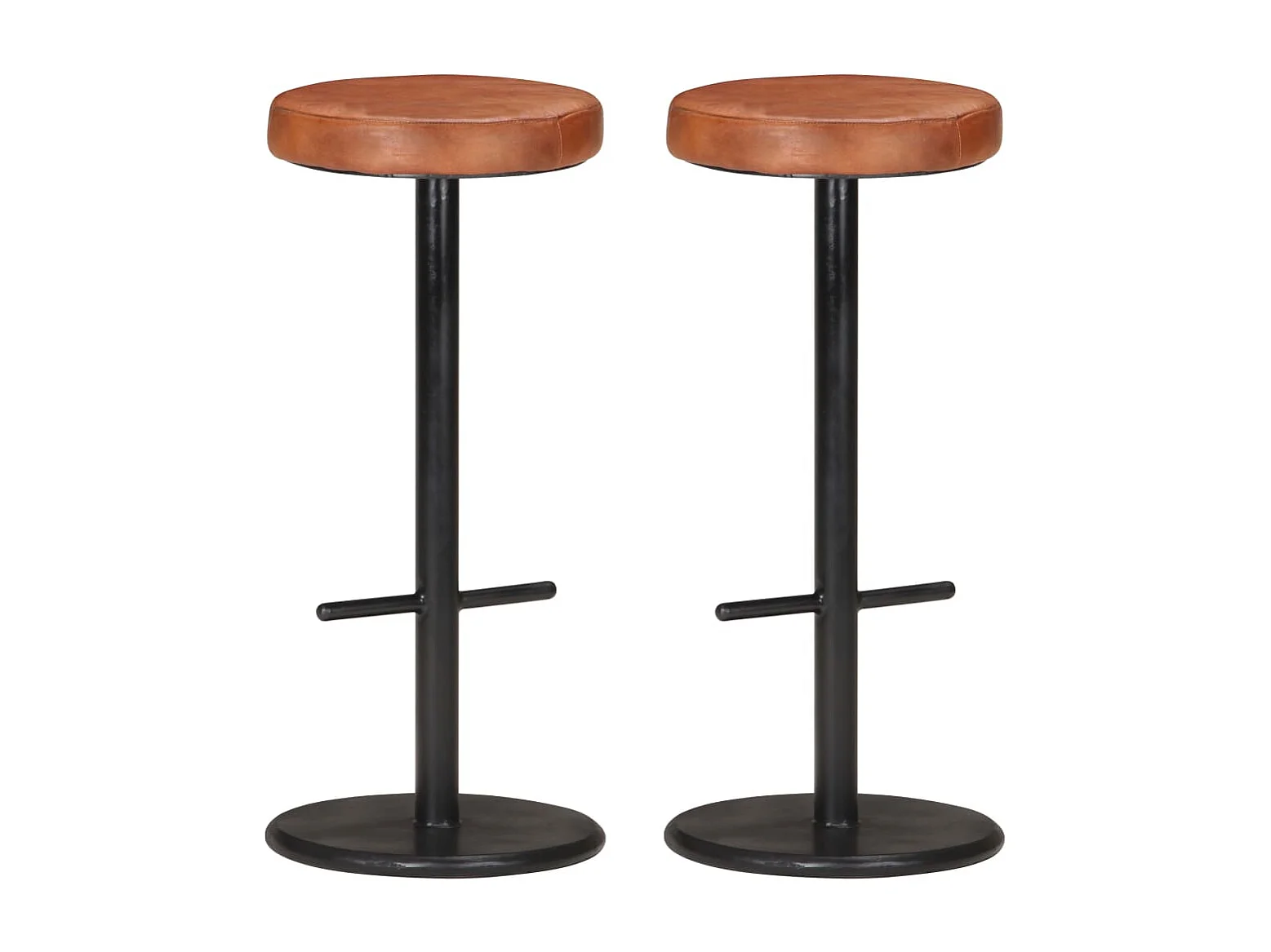 Sgabelli da bar 2 pezzi in vera pelle e legno massello di acacia
