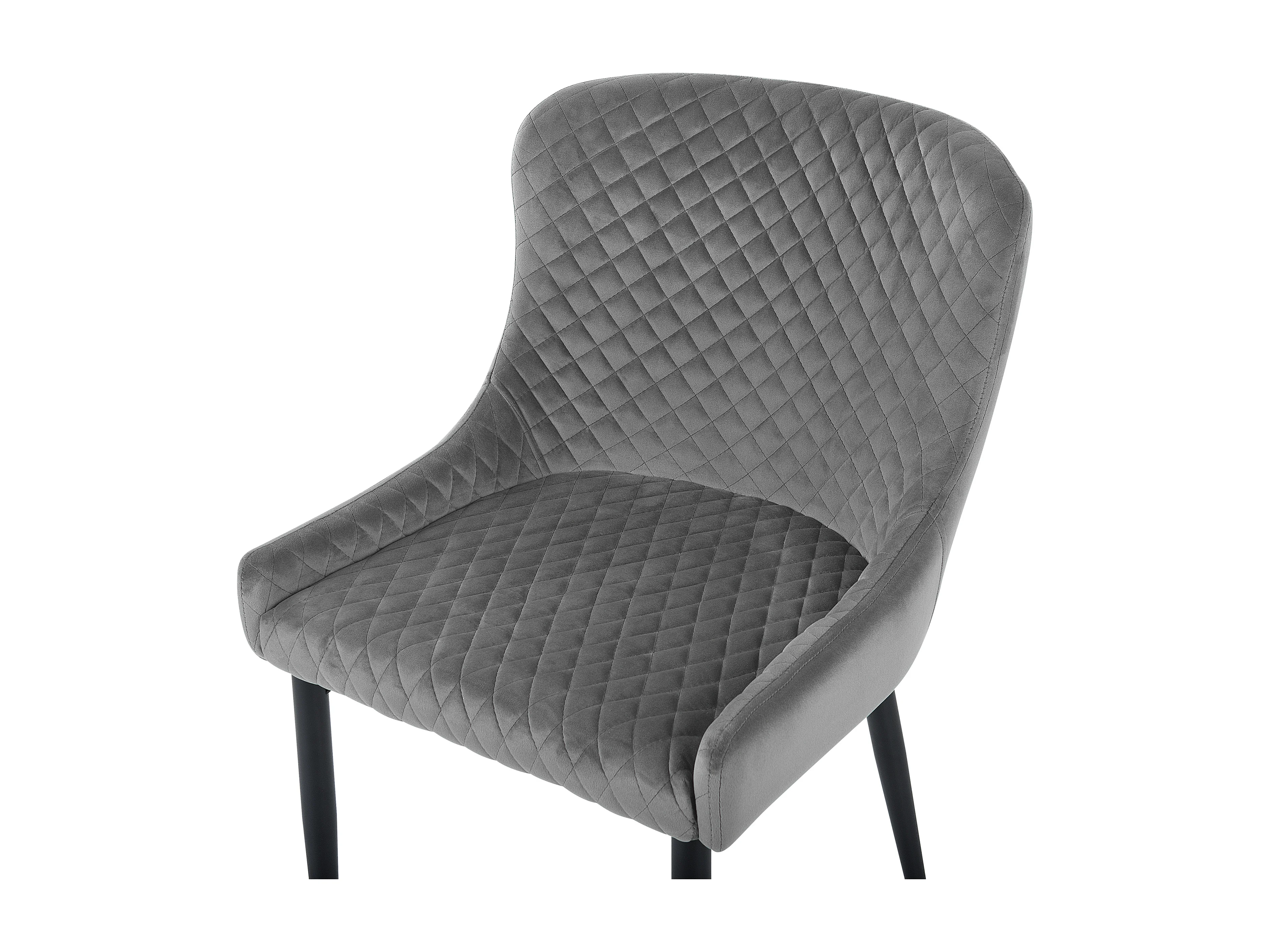 Set di 2 sedie per sala da pranzo - Velluto e legno massiccio - Schienale con motivo a rombi - Grigio e nero