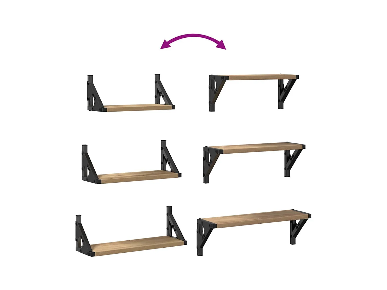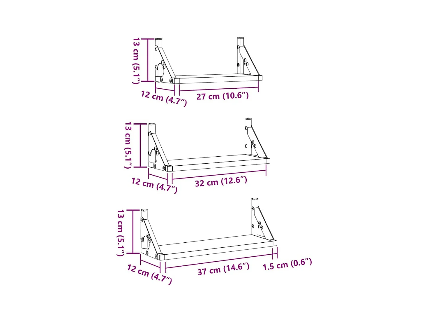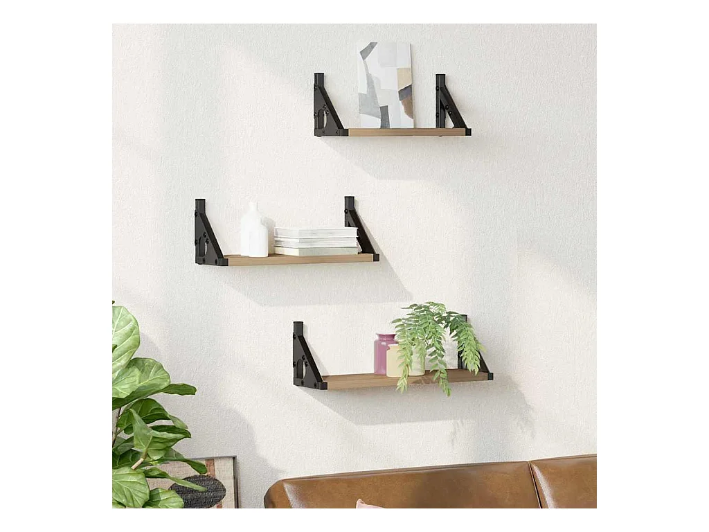 Set di 3 mensole da parete in legno ingegnerizzato, rovere affumicato