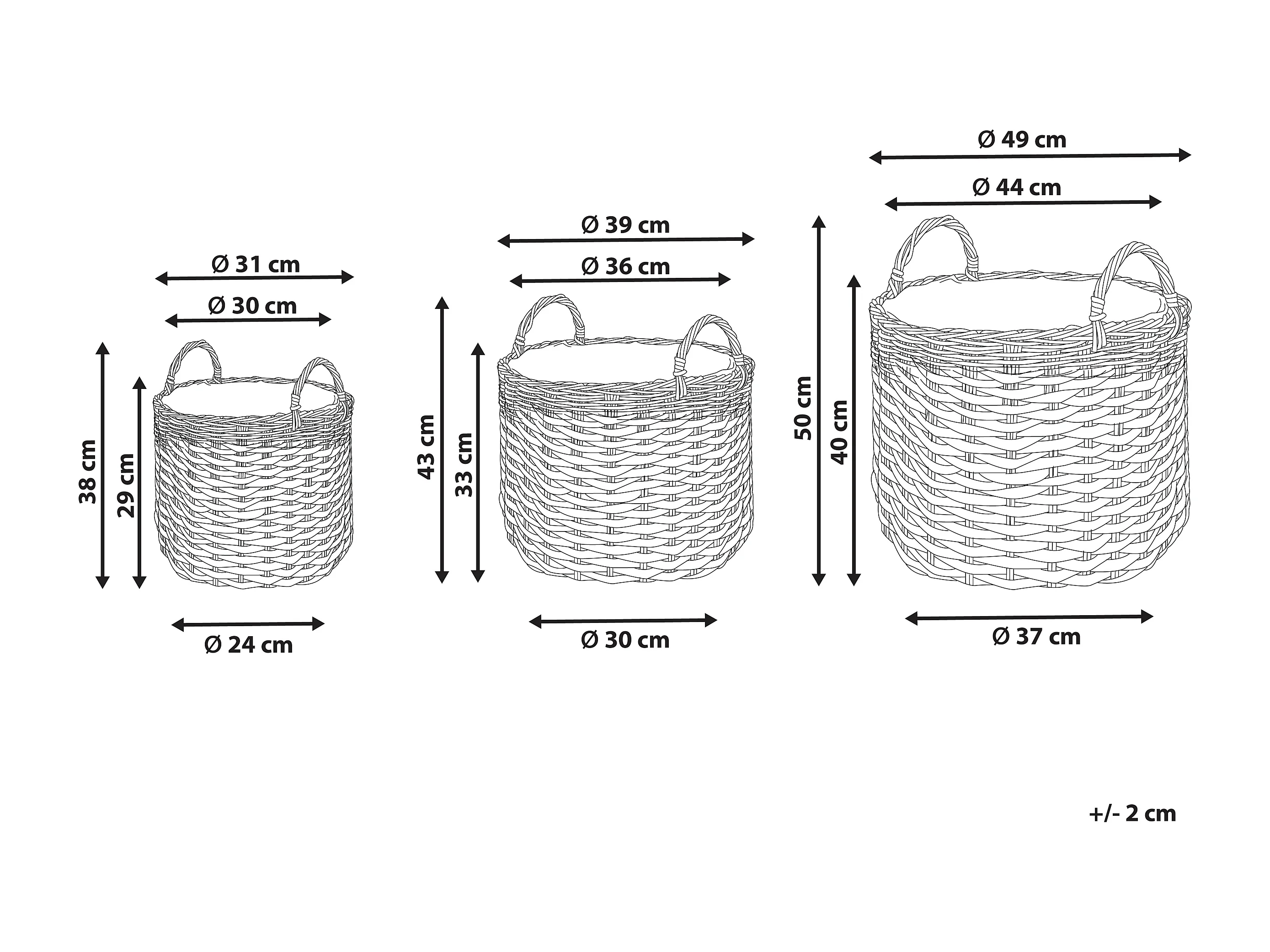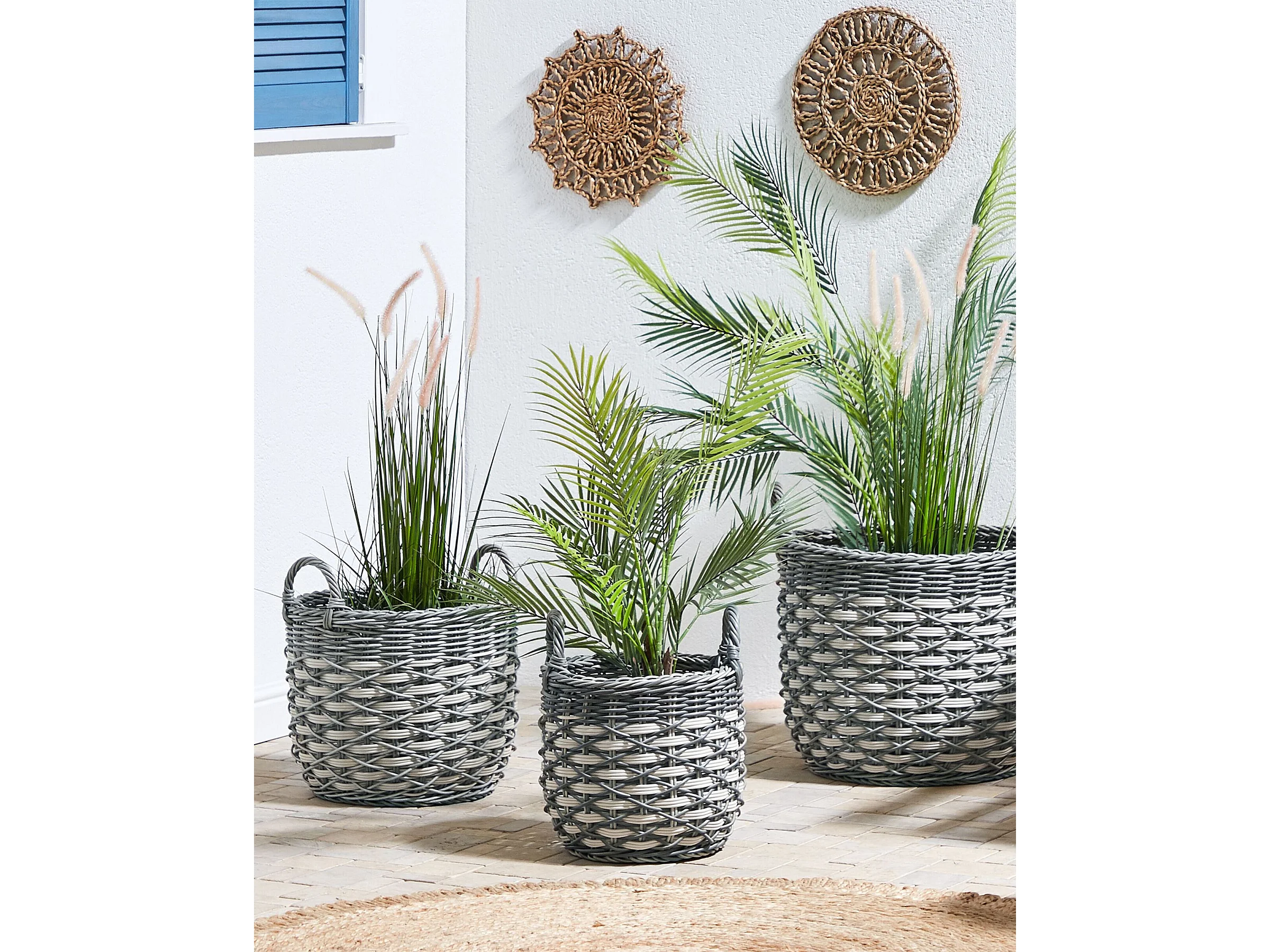 Set di 3 vasi per piante GEFIRA Rattan sintetico 31/39/49 cm Grigio