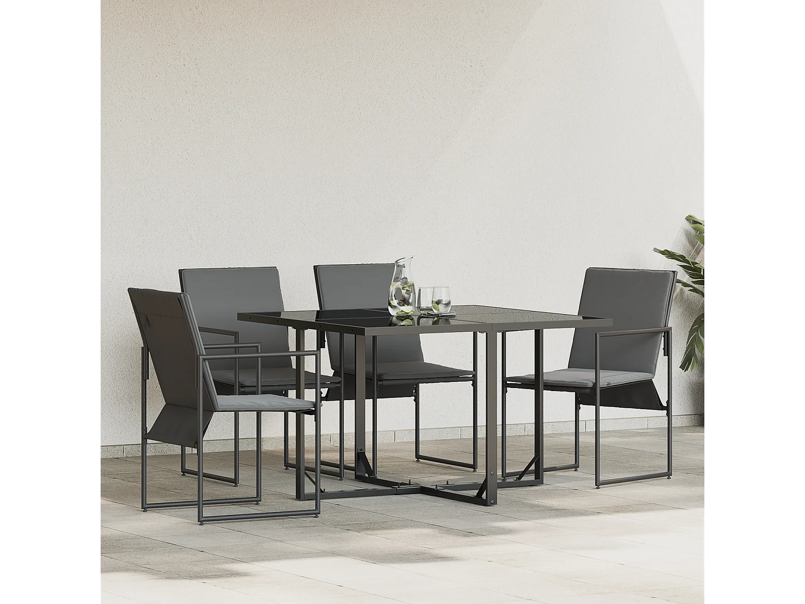 Set di 4 poltrone da giardino nere con cuscini