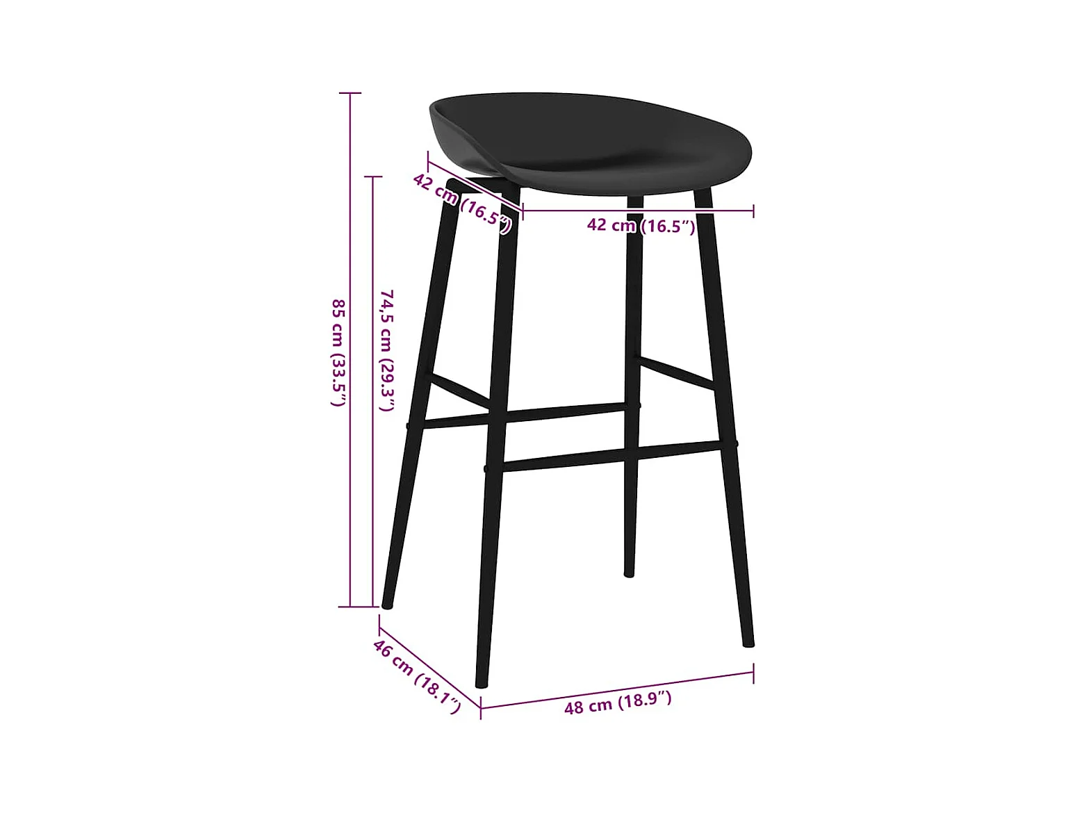 Set di 2 sedie da bar in plastica nera
