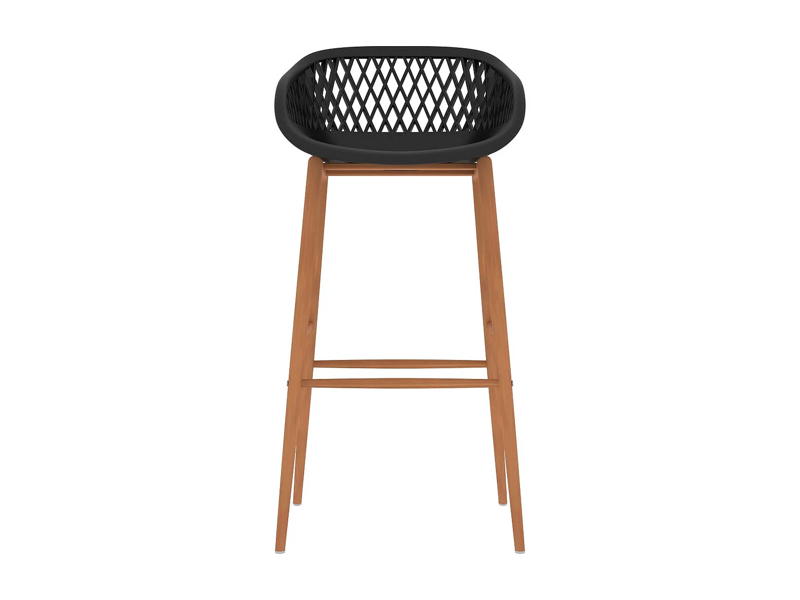 Set di 4 sgabelli da bar neri in resina intrecciata e legno di acacia