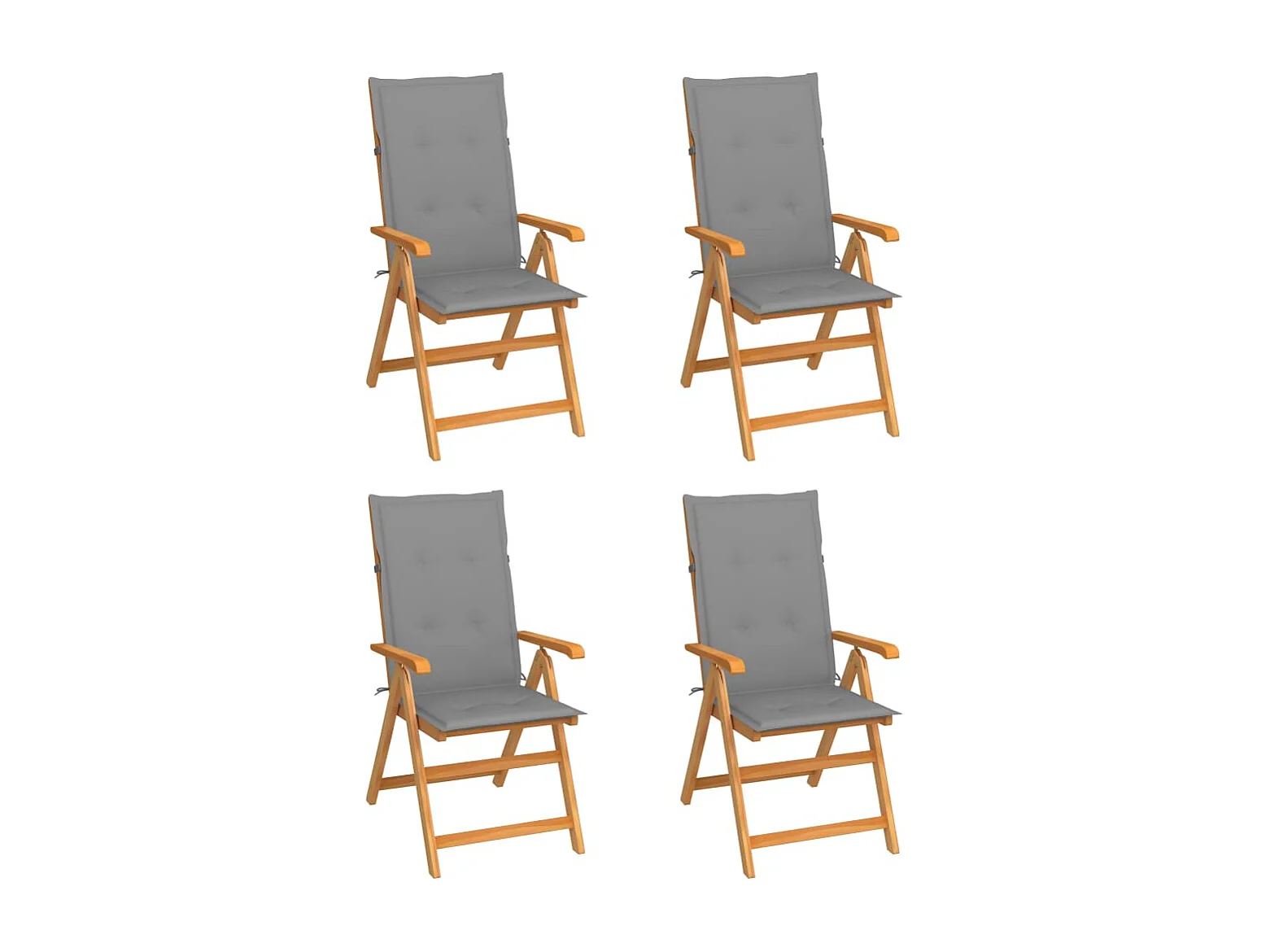 Set di 4 sedie da giardino con cuscini grigi. Legno massello di teak