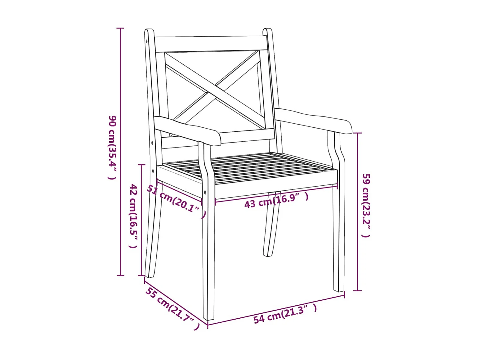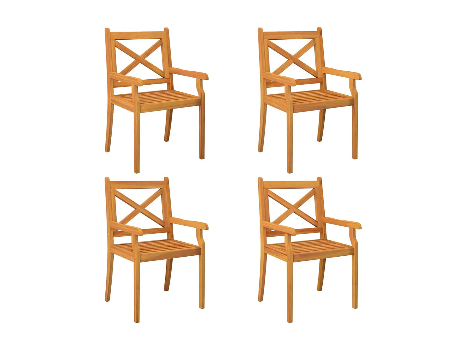 Set di 4 sedie da pranzo per esterno. Legno massello di acacia