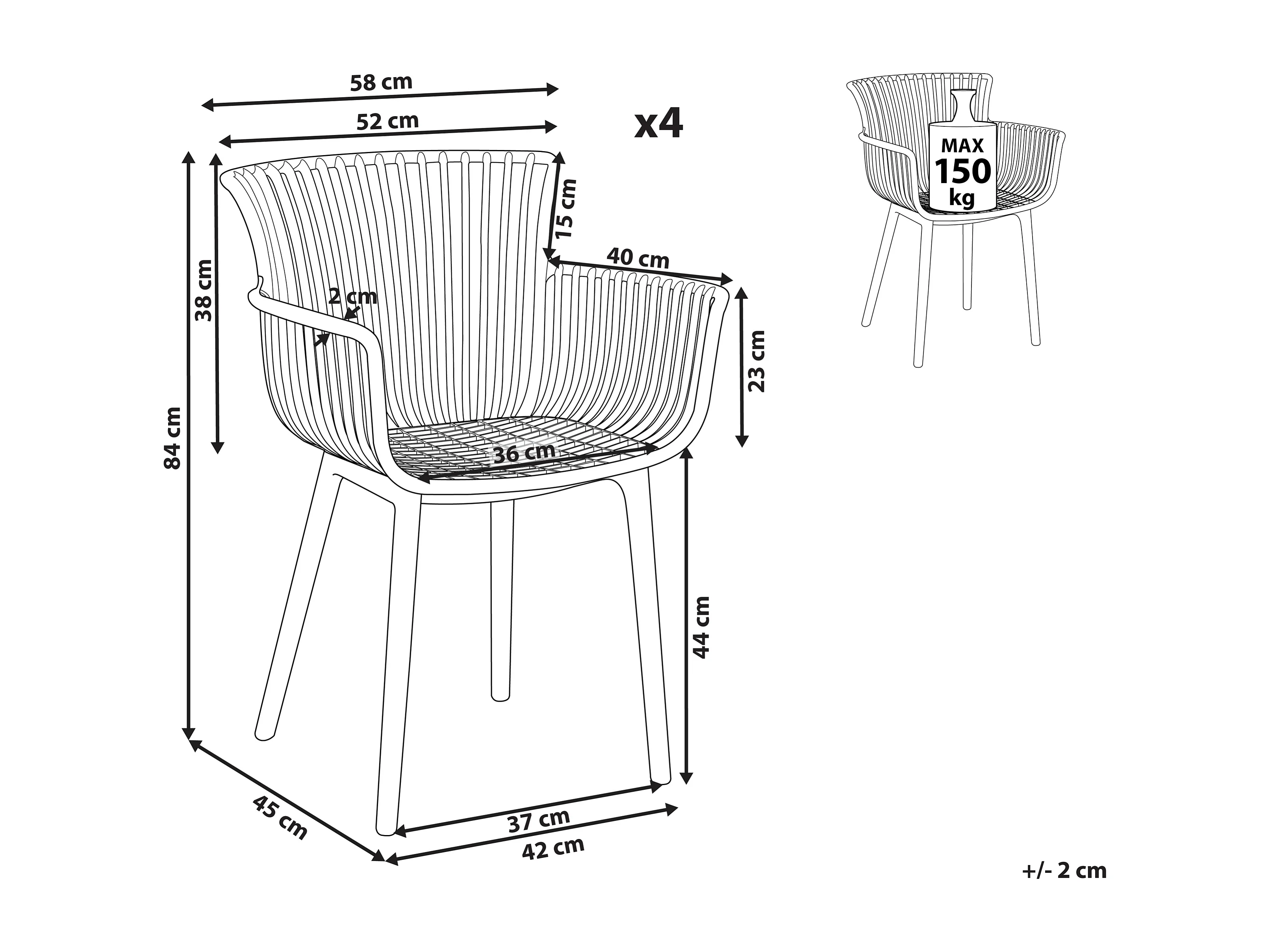 Set di 4 sedie da giardino PESARO Nero