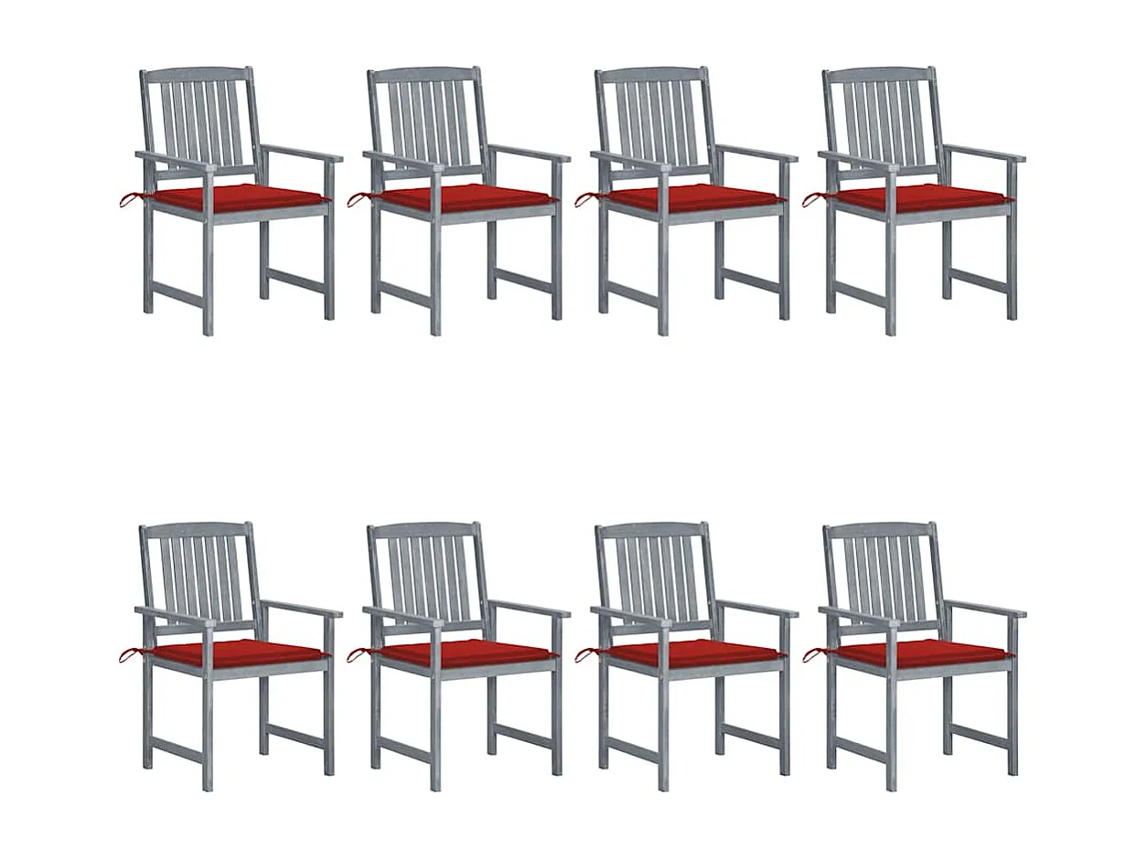 Set di 8 sedie e cuscini da giardino in legno massello di acacia grigio