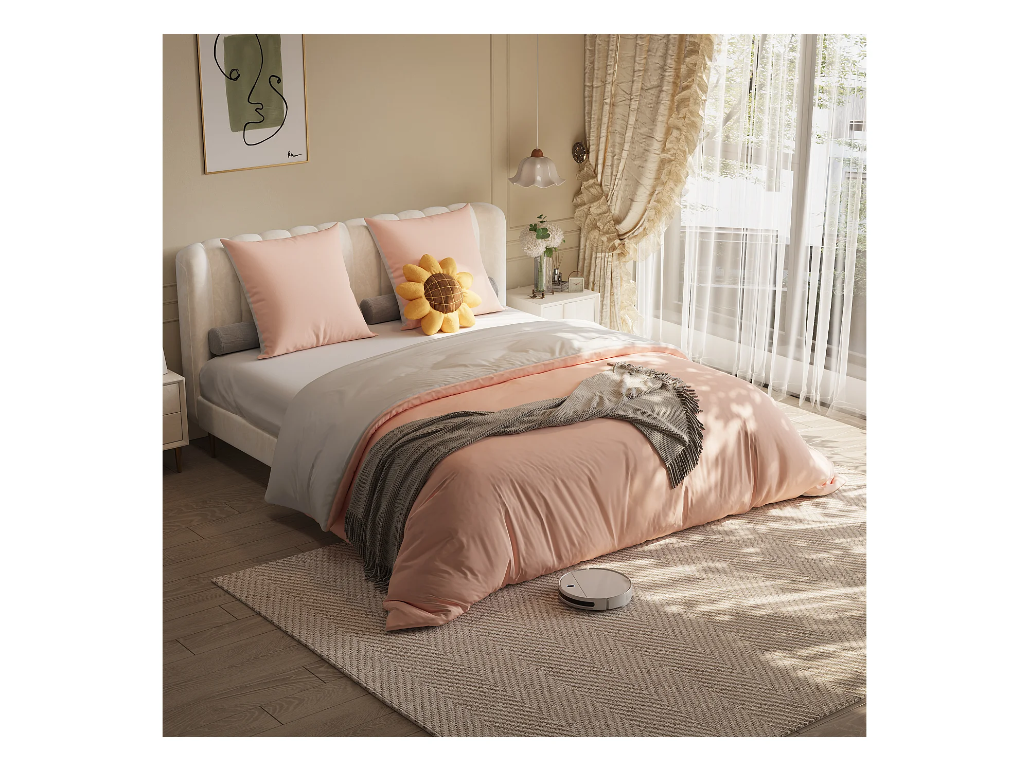 Set di biancheria da letto 3 pezzi, federa*2 (80 x 80), lenzuolo con angoli (140 x 200) + copripiumino (140 x 210), bianco + rosa, poliestere