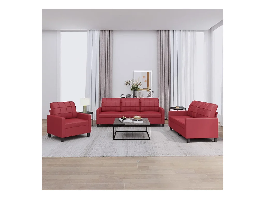 Set di divani 3 pezzi con cuscini in similpelle rosso bordeaux
