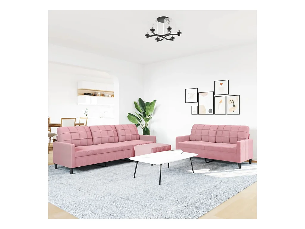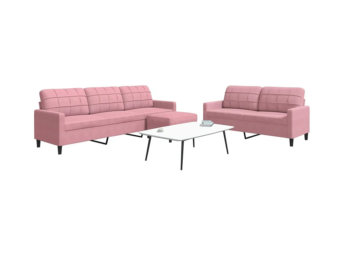 Set di divani 3 pezzi con cuscini, velluto rosa