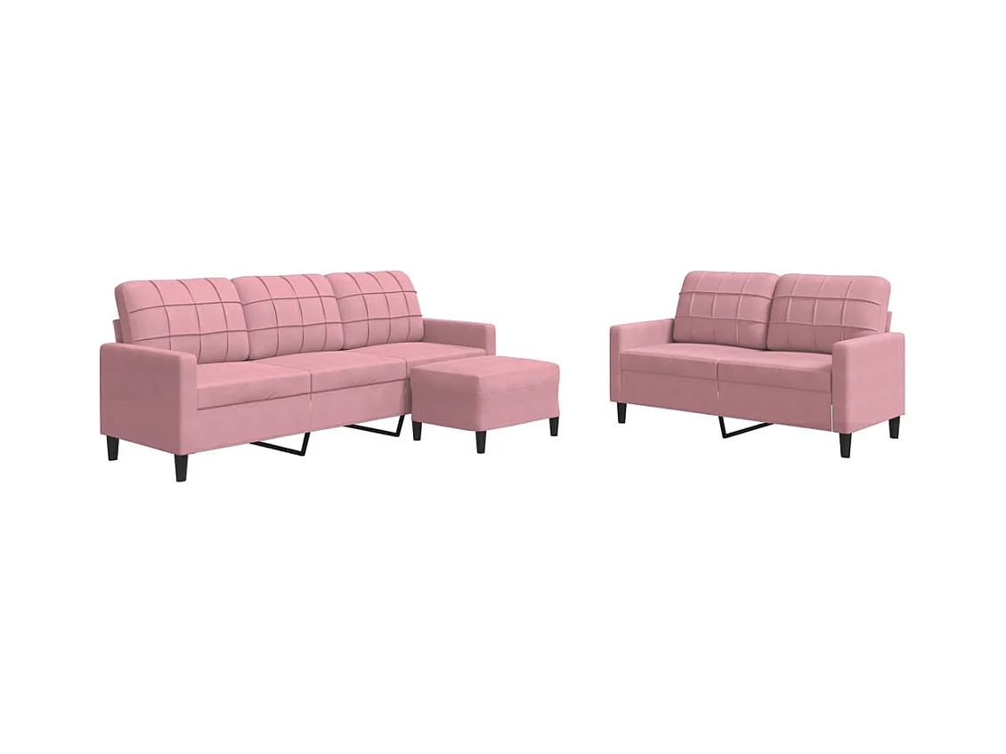 Set di divani 3 pezzi con cuscini, velluto rosa